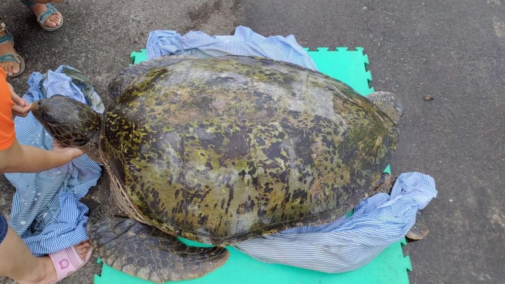 值得關注的是特殊擱淺個案中,5月下旬在基隆八斗子港口外少見破百公斤的大型綠蠵龜死亡個體,經病理解剖研判死因為誤食長17公分釣具,造成結腸穿孔壞死所導致,由於海龜食道內特殊凸起構造讓食物進入食道後不易順著水流滑出,因此海龜吞食異物後將難以吐出。