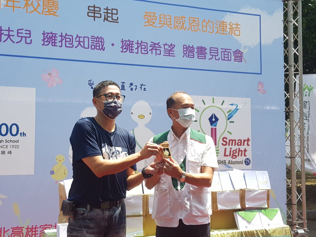 高雄中學建校百年校慶,今(28)日雄中75級校友串連認養贈書全省家扶孩子,自107年開始至今7年,幫助上千位孩子學習向上,並且帶動全省雄中校友加入贈書做公益,甚至考上不少知名大學,雄中今年舉辦百年校慶前贈書活動,有不少孩子到場表示感謝。雄中75級校友並捐印4萬份感謝明信片,提供各家扶中心學生手寫感謝認養與捐款人,藉由雄中百年校慶串起愛與感恩。
