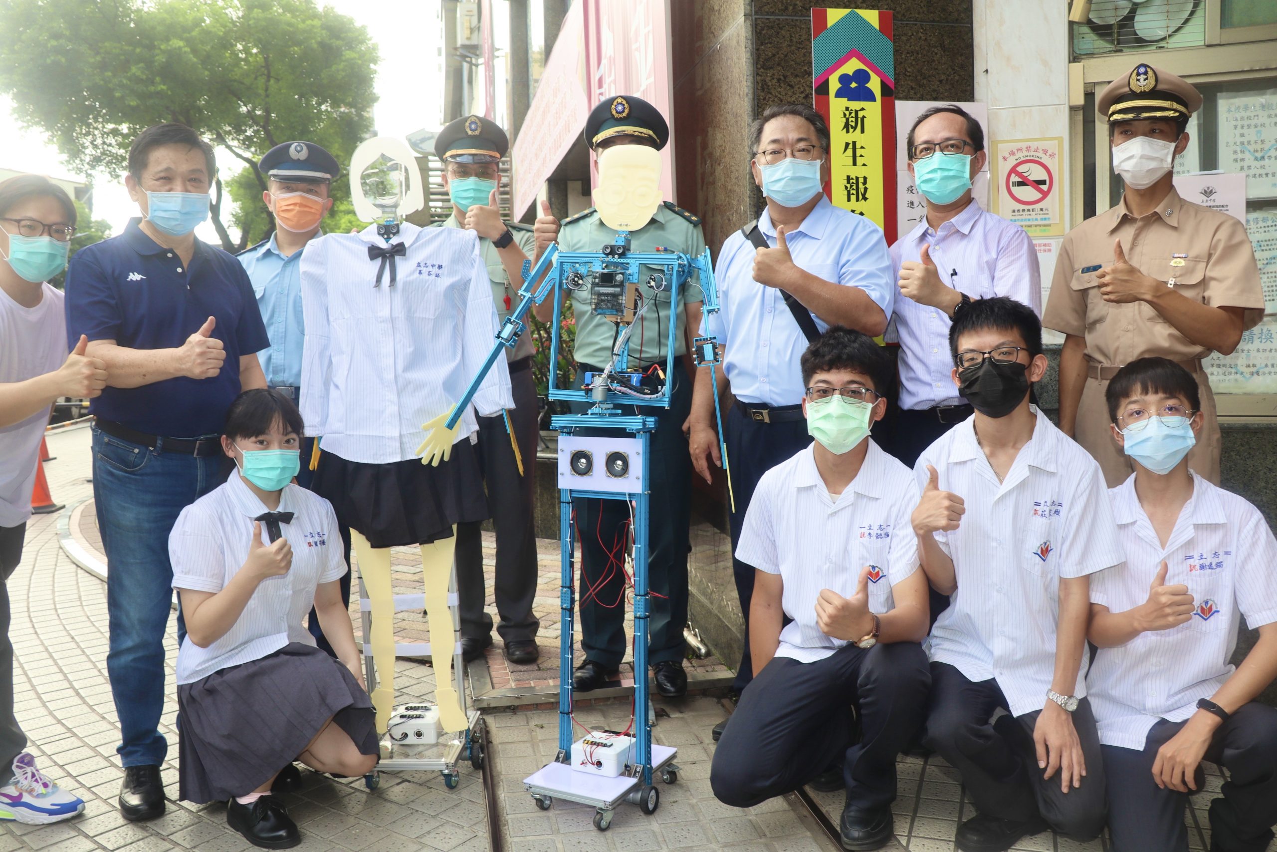 高雄市立志中學機器人出沒!?原來是特色課程中,師生一起研發的智能機器人,這個新學期更是讓機器人化身導護小幫手,在通學時段,為學生交通導護,不僅引導安全過馬路,還能偵測排除違停車輛,同時在學生進入校園時,協助量測體溫,及時提供學生體溫異常警訊、酒精消毒等,在兼顧防疫與學習的重要時刻,堪稱完美機器人!