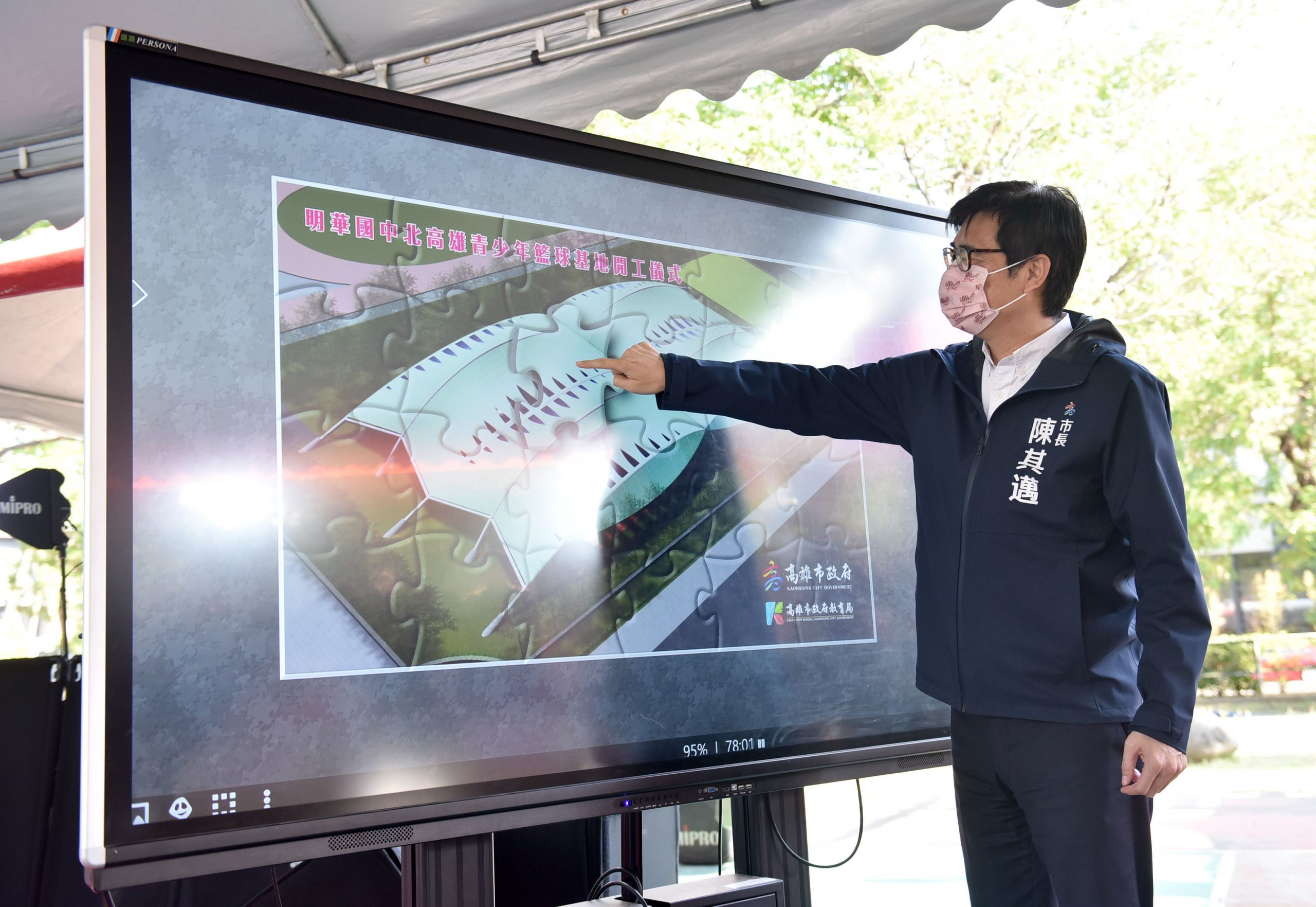 為提升市民運動環境與品質,高雄市政府選定明華國中打造現代化半戶外籃球場,作為北高雄青少年籃球基地,市長陳其邁今(4/27)日出席主持開工儀式,他表示,市府持續打造國民運動中心,近一年多來,有7個學校開放夜間球場,加強照明、設備改善,並陸續完成13個運動中心,以自建、舊場館整建或公辦民營的方式辦理,希望在最短的時間,讓喜歡運動的年輕朋友及市民,能夠有完善的運動場域。
