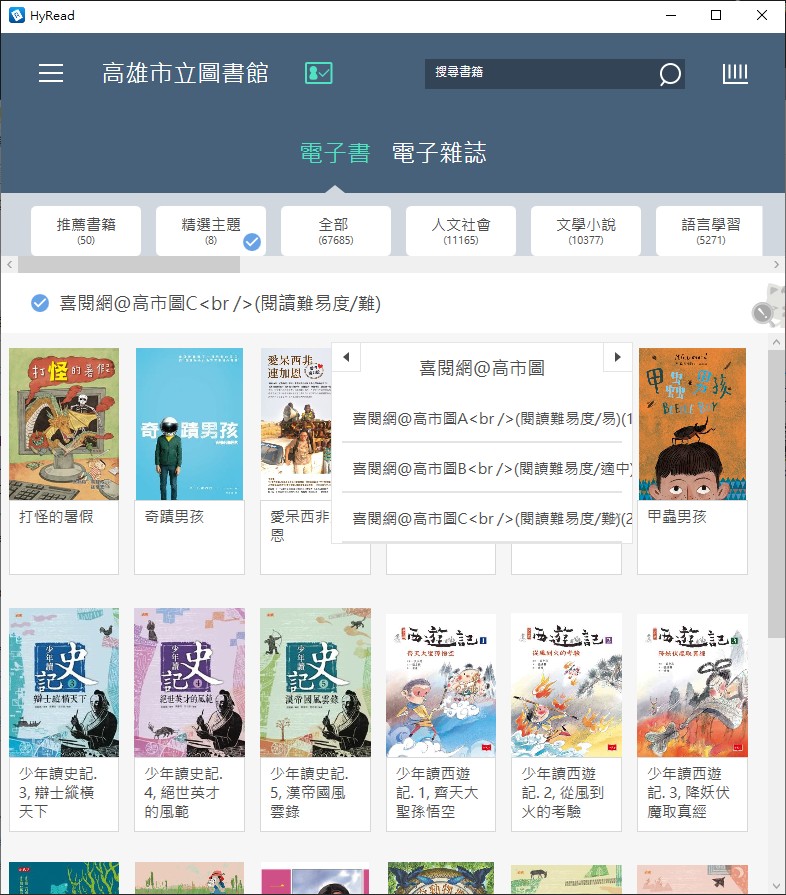 暑假來臨,安心防疫也能線上讀好書,高雄市立圖書館「喜閱網@高市圖」電子書系統平台成立兩年間,不間斷的購置106-110年間使用率較高的喜閱網電子書,至今共有79種、1626冊不同類型圖書可借閱,比起去年多增加五百餘冊,讀者可以利用網頁版或是APP就能夠隨時隨地輕鬆線上閱讀。將電子書下載到電腦、平板等載具內,在借閱期內都可離線閱讀;亦有線上即時閱讀功能,滿足高雄市國小學童不受限時間、地點的閱讀服務。
