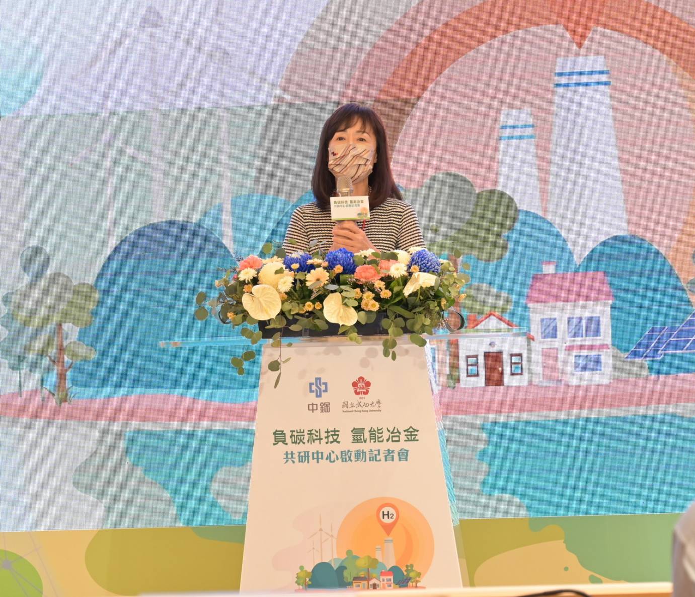 為達成2050年淨零碳排長期目標,中鋼規劃2項極低碳鋼鐵生產技術,其一是二氧化碳捕捉封存(CCUS),其二為建立氫基直接還原鐵製程,亦即將鐵礦以綠氫還原成直接還原鐵(DRI),再投入電爐生產鋼液。成大是中鋼創新技術的長期合作夥伴,在再生能源、CCUS等領域具有前瞻的技術基礎,期許共研中心的成立不僅協助中鋼2025年落實「能效提升」的短程減碳目標,另為2050年碳中和蓄積厚實的研發能量。