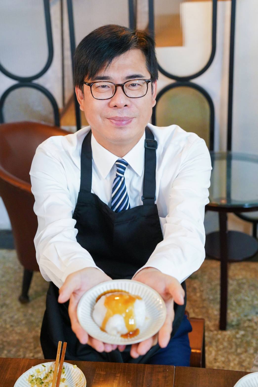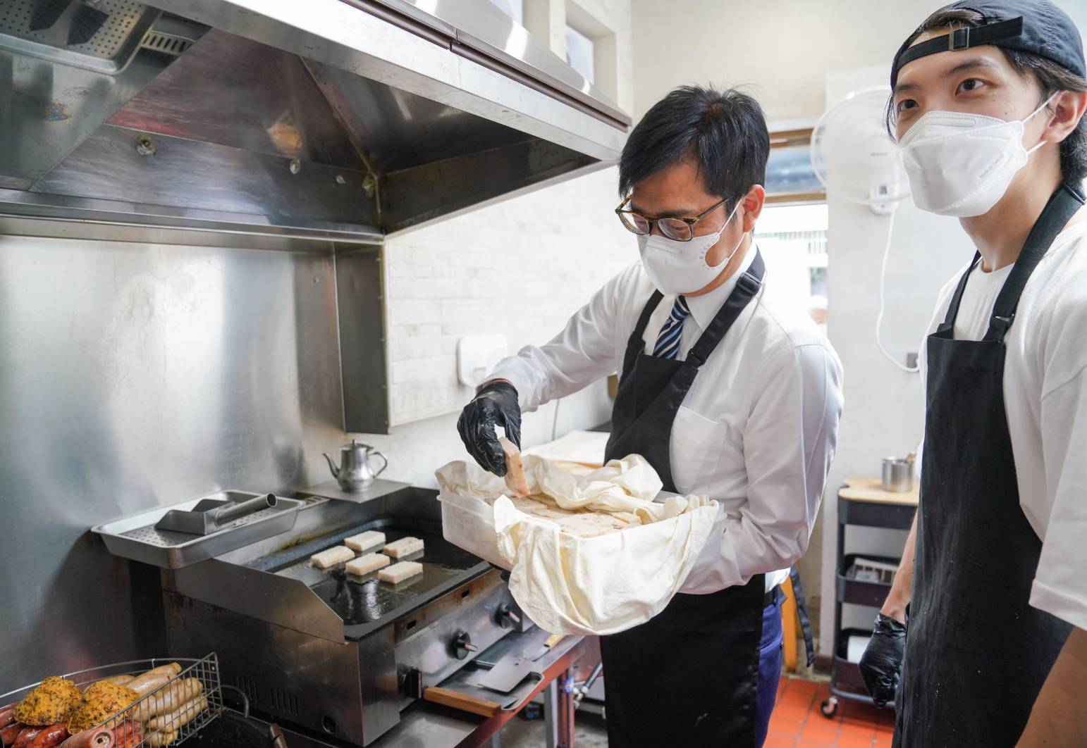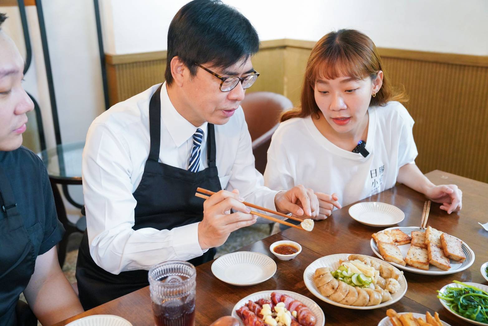 陳其邁來到日腸小室,捲起袖子跟店長一起包肉圓、灌糯米腸,親身體驗手路菜費工的多道程序。美食當前,陳其邁一口接一口吃著古早味小吃,過程中不忘問店長創業過程,張小姐分享申請高雄市政府青創補助便捷又簡單,大幅減少創業初期的負擔,「表格勾一勾,有夢想就來高雄」陳其邁要讓有夢想的年輕人,在高雄築夢踏實。