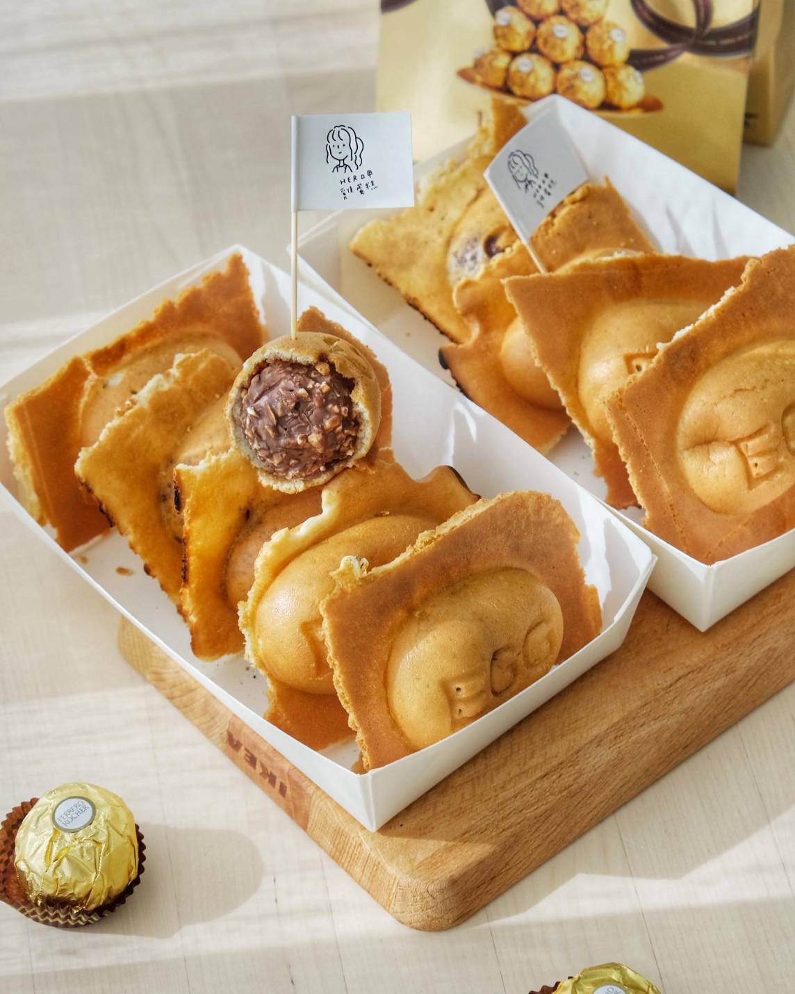 有了茶飲提神,再加上甜點助攻,更是提升辦公情緒的小妙招。位於前金區允文街上的「her呷雞蛋糕」,鄰近漢神本館店,是當地的熱門網紅店,主打有餡的雞蛋糕,內餡更是常常令人驚豔,酥脆雞蛋糕裡包裹著Q彈的花生湯圓、芝麻湯圓讓味道更有層次,店家也常配合節日推出特殊口味,像是情人節就推出金莎巧克力口味,過年期間推出松露干貝蟹味起司燒口味等,每份內餡都塞的鼓鼓的,是客人口耳相傳吃了會「爆漿」的雞蛋糕。