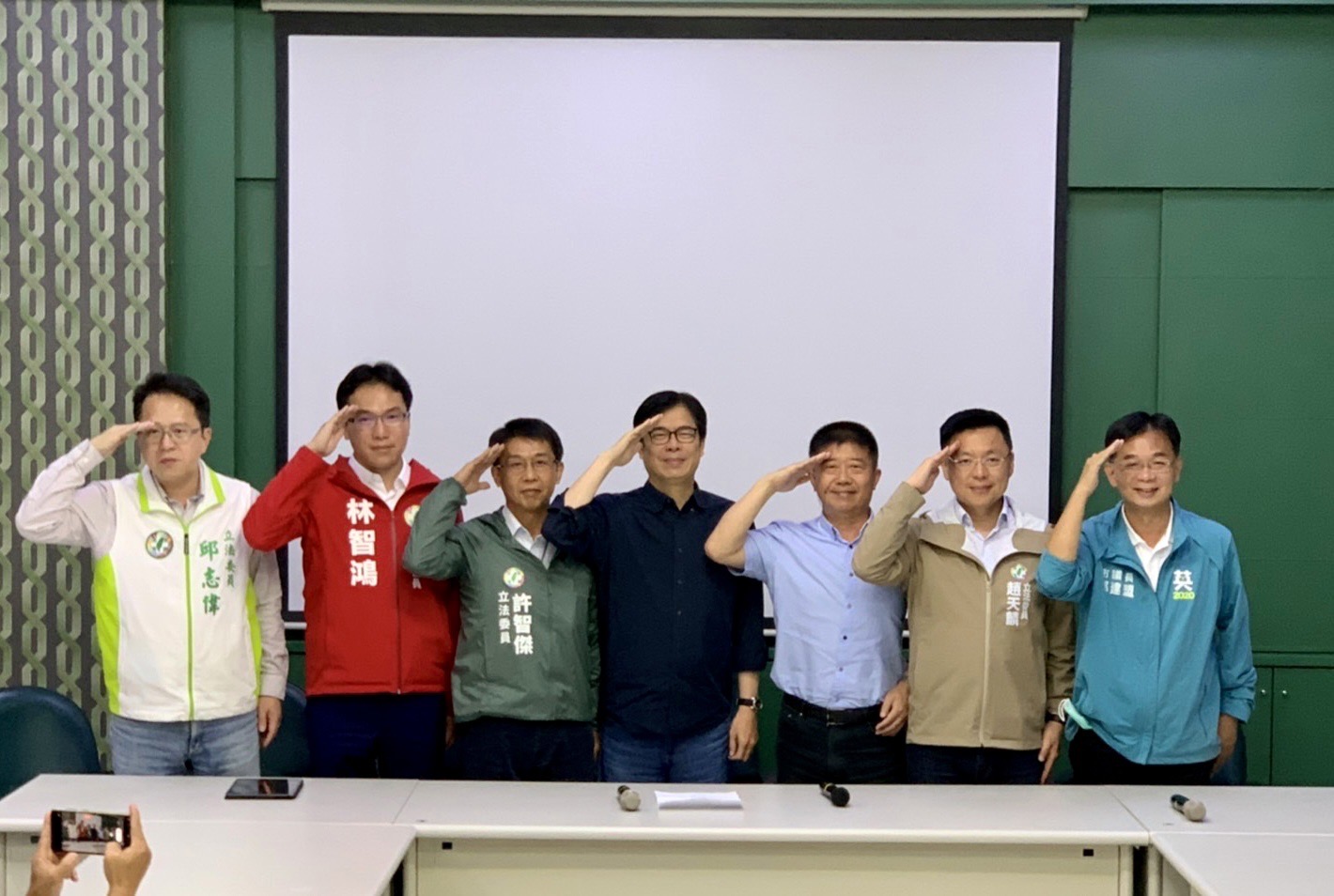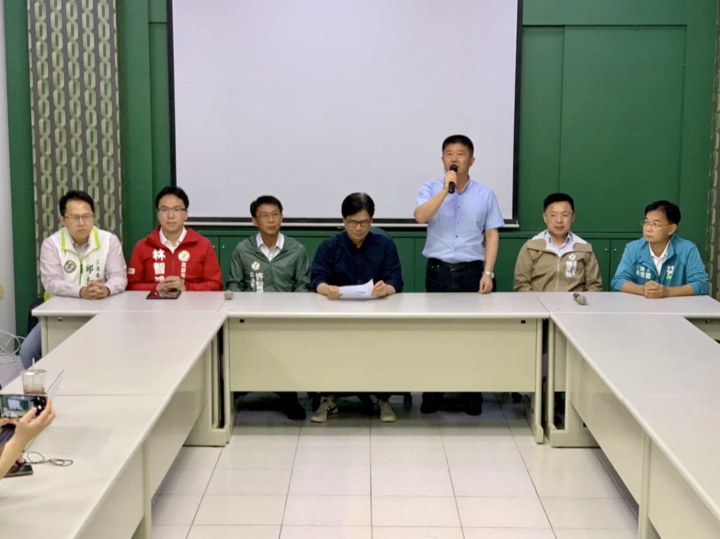 這場「相讓.相牽成」大團結記者會,下午在民進黨高雄市黨部召開,由主委許智善主持,包括市長陳其邁、立委許智傑、趙天麟、邱志偉,以現任議員林智鴻、郭建盟等人均共同與會。