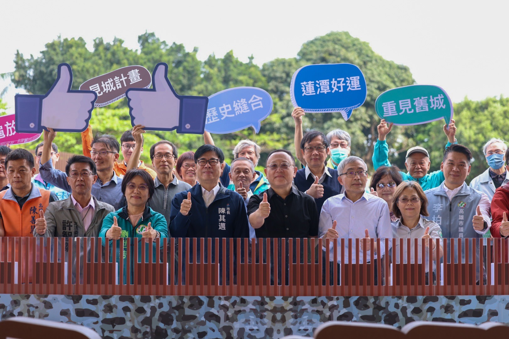 陳其邁特別感謝文化部長史哲及立委劉世芳,在兩位自高雄市府服務期間迄今,推動左營見城計畫不遺餘力,也強調今天只是第一階段770公尺,馬上還有1.5公里的南門到東門連結計畫,以及南門門戶改造計畫。