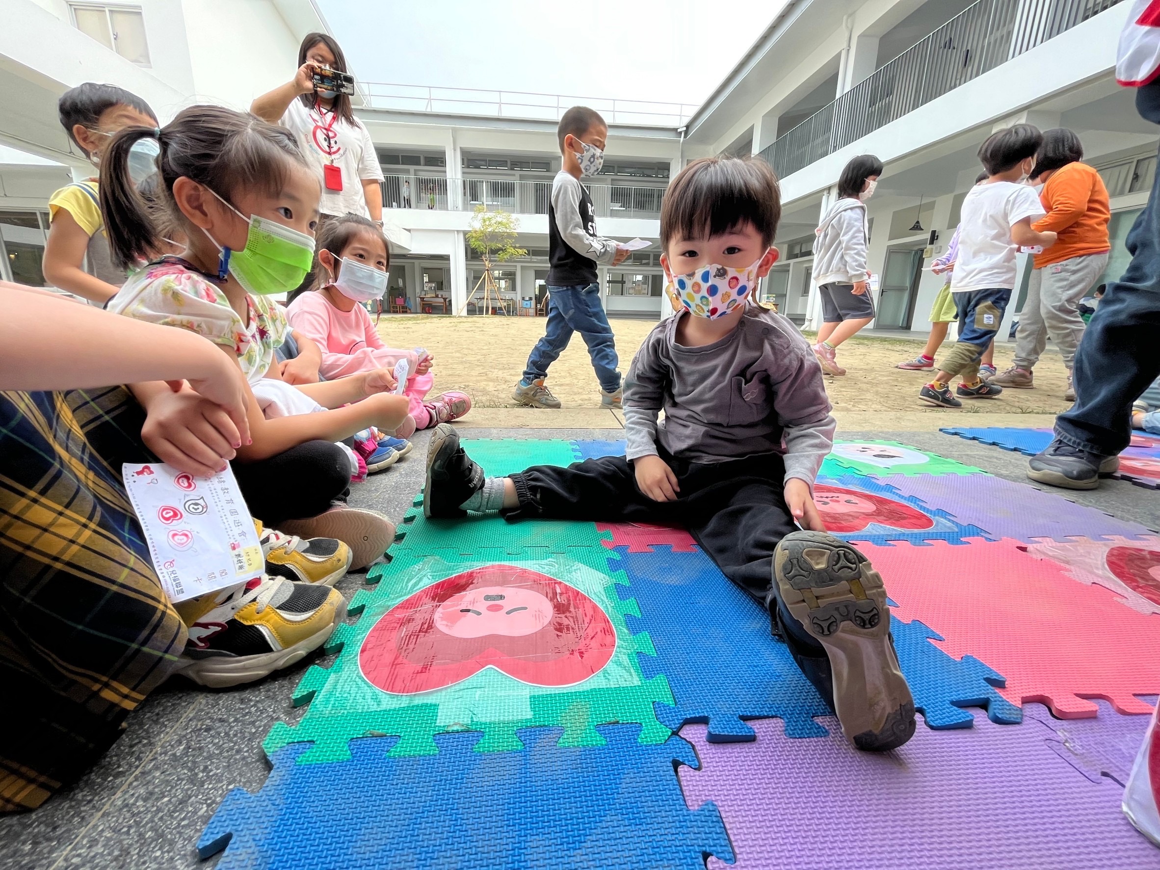 陸上的情緒園遊會規劃「身體變形蟲」、「情緒戳戳樂」、「情緒丟丟樂」等8種情緒關卡,透過擲出情緒骰子、碰觸心情地墊,做出不協調的肢體動作,奇怪的動作讓學生笑得合不攏嘴,同時也認知到情緒有著不同的樣貌。