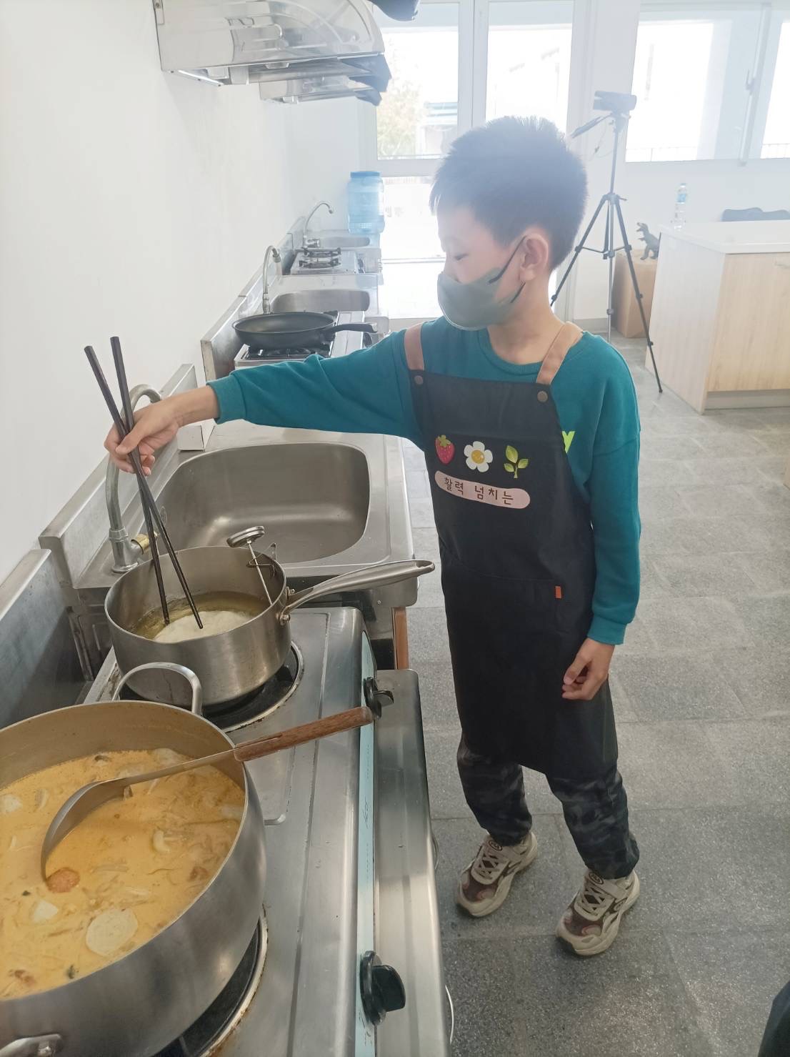 另外汲取海的味道,轉化成角色扮演的食魚餐桌活動,由學生分別裝扮小紳士、小淑女、廚師與外場服務員,將彌陀在地的虱目魚特產結合南洋風情,讓學生烹煮出「月亮魚餅」、「印尼炒麵」與「叻沙火鍋」等3道料理。