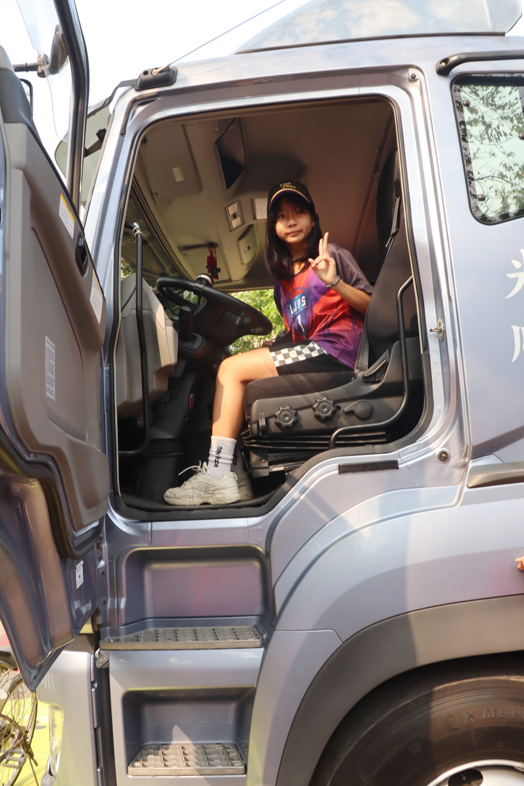 校長吳國泰祝所有的小朋友兒童節快樂,也提醒大家重視交通安全,尤其大型貨櫃車的視線差,對行人與騎腳踏車者帶來的危險。這場體驗學生們登上貨櫃車坐上駕駛座,直說視野很高,若不留意,確實會因看不見左右方行人與腳踏車,導致發生車禍。