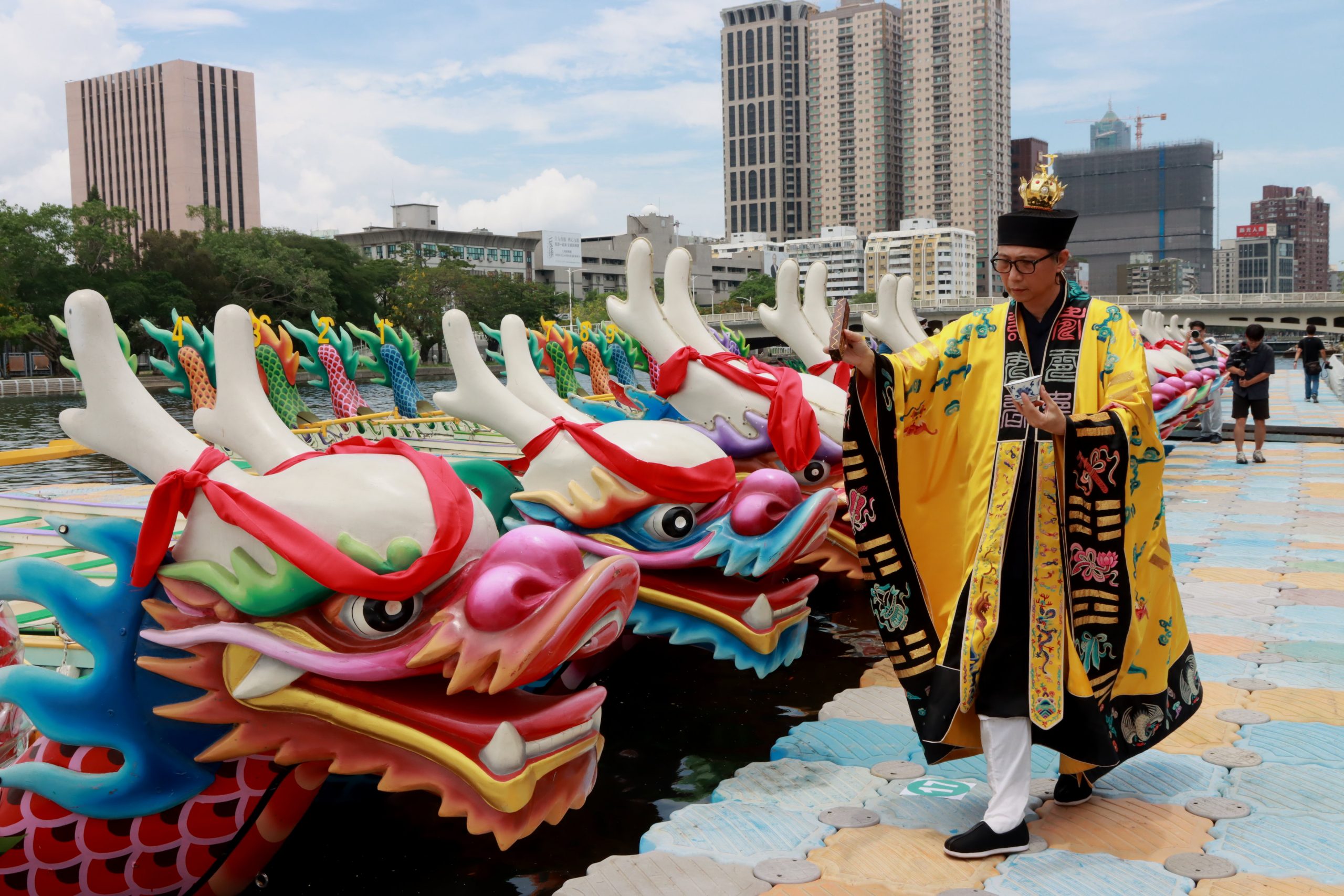2023高雄愛河端午龍舟嘉年華將在6月22至24日端午連假在愛河水域登場,為祈求活動平安順利、風調雨順,6/10遵循古禮在高雄市音樂館前廣場舉行點睛祈福儀式。高雄市長陳其邁表示,今年報名隊伍數將近130餘隊,一同爭奪百萬元總獎金,之前因疫情而2年未辦龍舟賽事,今年除了有龍舟競賽,還有紙風車劇團及市集,精彩熱鬧,全台灣看龍舟賽事當然要到高雄。