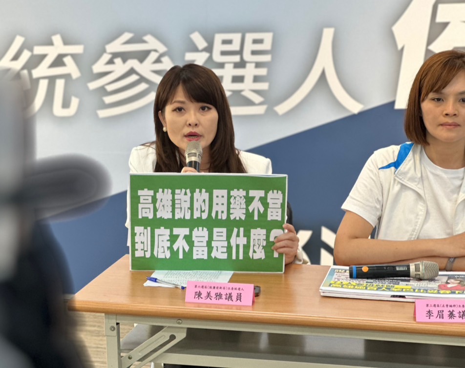 陳美雅質疑,既然高雄查到有不當用藥,那麼何謂不當用藥?用藥標準中央衛福部應該要予以公布,這樣的問題應該不是只有高雄有,全國都可能存在類似的問題。