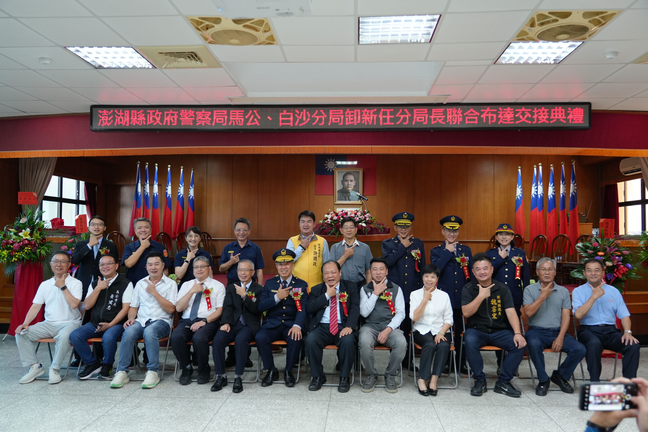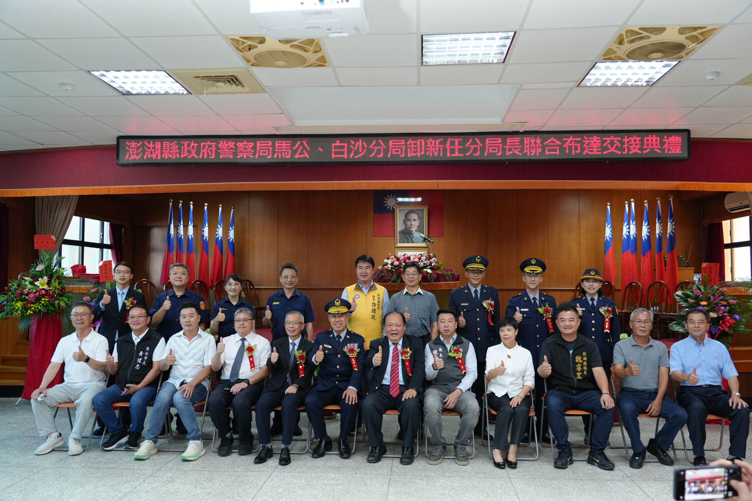 交接典禮現場冠蓋雲集,包括縣議長陳毓仁、多位議員、司法與海巡單位代表及警友會、退休警察協會等各界貴賓到場,見證馬公與白沙分局新舵手正式上任。