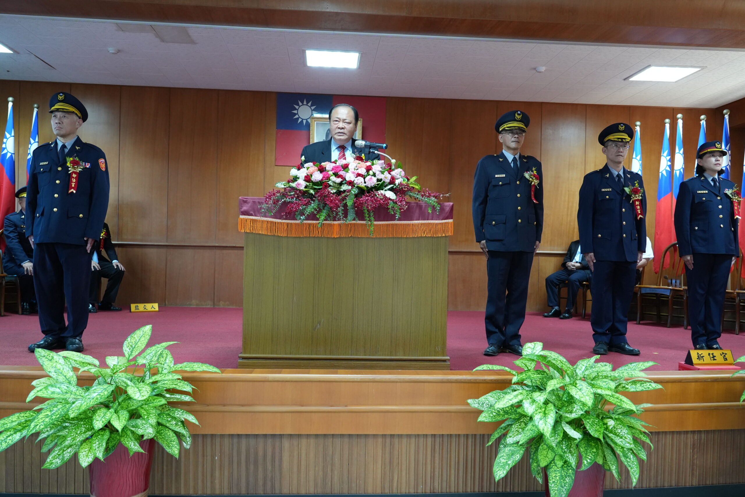 澎湖縣長陳光復親自到場觀禮,向新任分局長及警局主任秘書致賀,並祝警察同仁父親節快樂。他肯定歷任局長與基層警力的辛勞,讓澎湖治安長年名列前茅,並期勉兩位新分局長肩負澎湖四鄉市的治安、交通與服務重任,發揮專業與領導力,與縣府團隊共同打造安全宜居、充滿活力的澎湖。