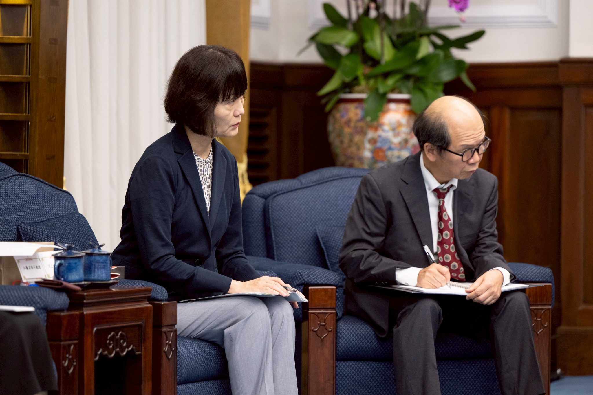 這次訪問團成員還包括日本貿易振興機構亞洲經濟研究所上席主任調查研究員佐藤幸人、神奈川大學教授川上桃子、學習院大學教授江藤名保子、拓殖大學教授門間理良、東京大學特任研究員陳思樺及黃偉修等。行政院政務委員馬永成、外交部長林佳龍、「台灣日本關係協會」秘書長張仁久、總統府秘書長潘孟安及國家安全會議秘書長吳釗燮也陪同會見。