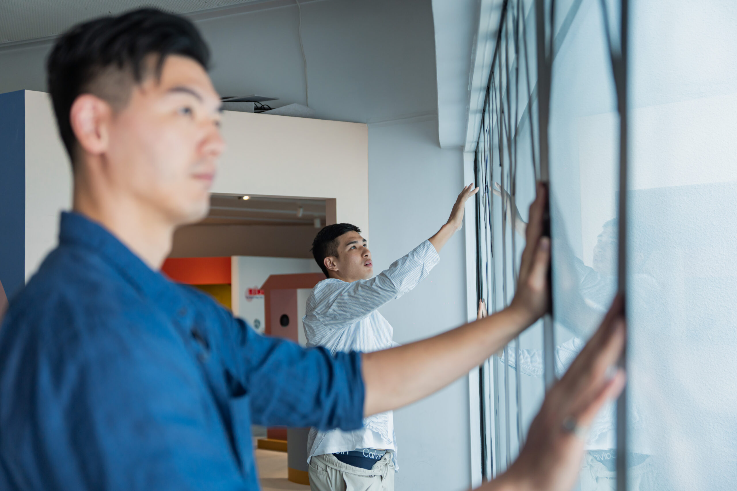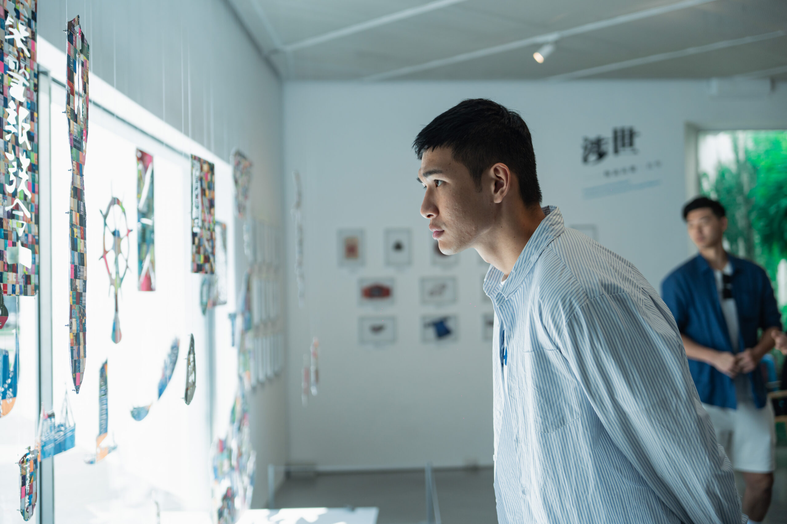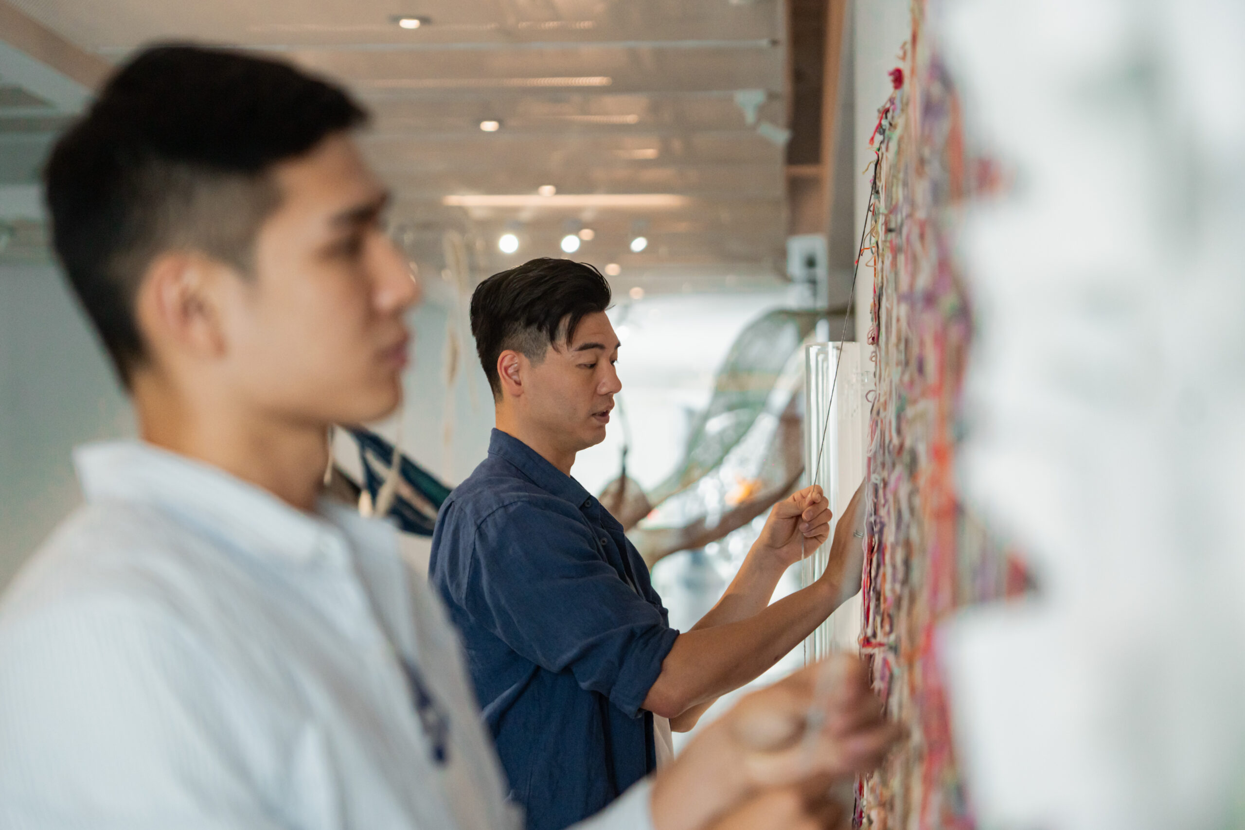 海神隊長胡瓏貿分享,對他而言,在球場上與隊友合作突破對手防線,就是一種藝術。平時鮮少有機會參觀藝文場館的他,對於內惟藝術中心結合展覽、咖啡廳與餐廳的複合式經營印象深刻。他雖然謙稱自己沒有藝術天分,但對於《編織時空》展覽感到好奇,也親自參與互動區編織毛線,並寫下「海神必勝」的許願小卡。