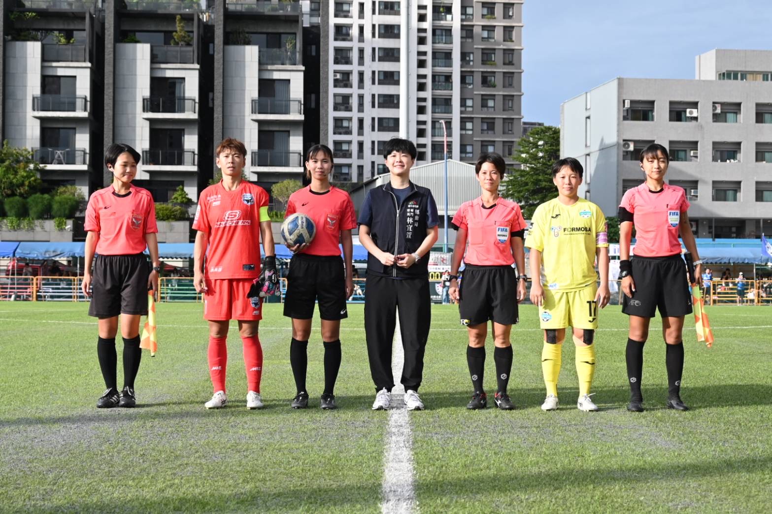 本週賽事焦點鎖定在台中太原足球場,由地主隊台中藍鯨迎戰強敵台北熊讚。現場湧入大批球迷熱情應援,期盼見證藍鯨再添勝績。台中市政府運動局專門委員林宜萱也特別代表市長盧秀燕到場開球,為選手們加油打氣,期許她們展現平日苦練的成果。