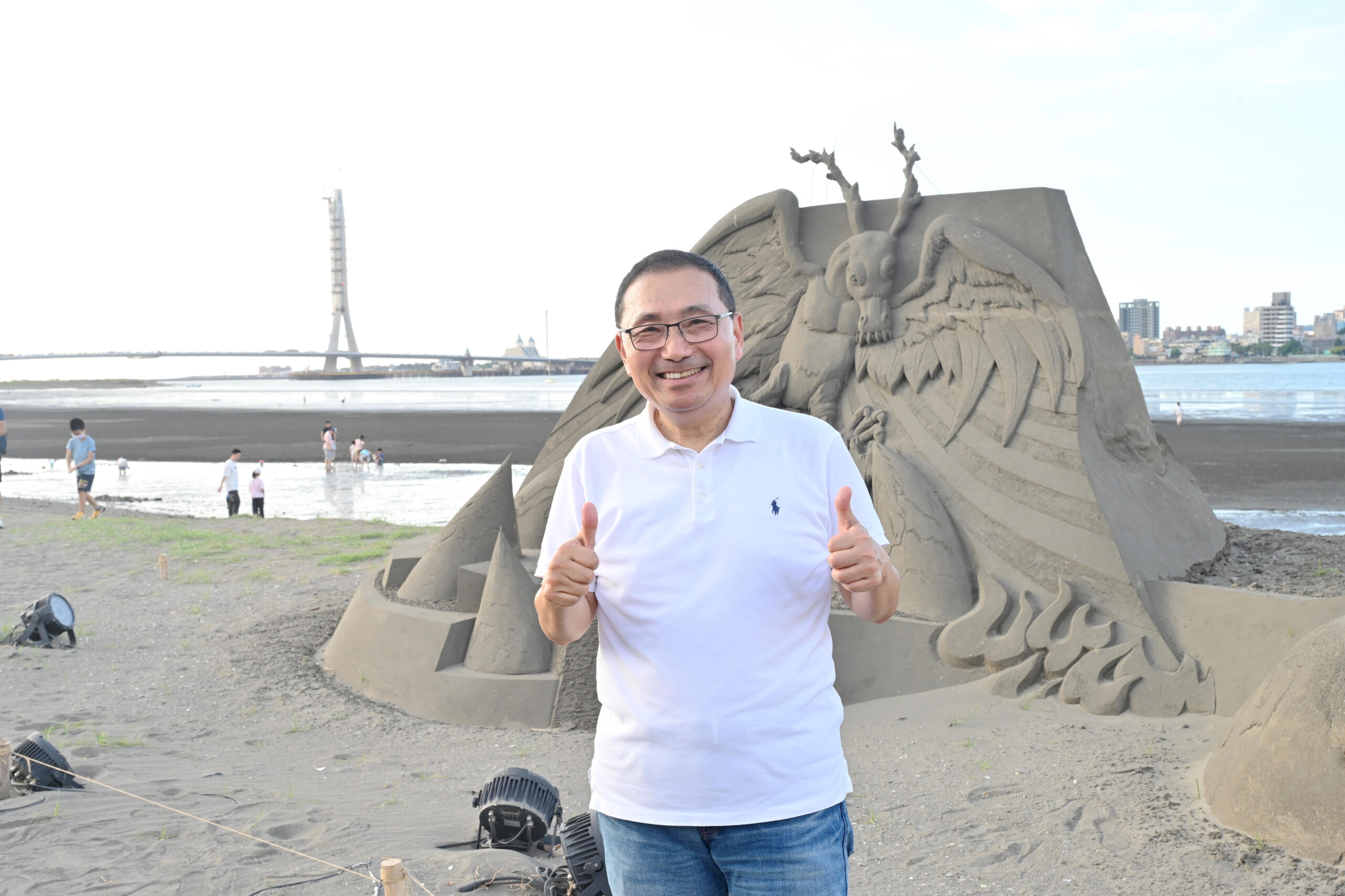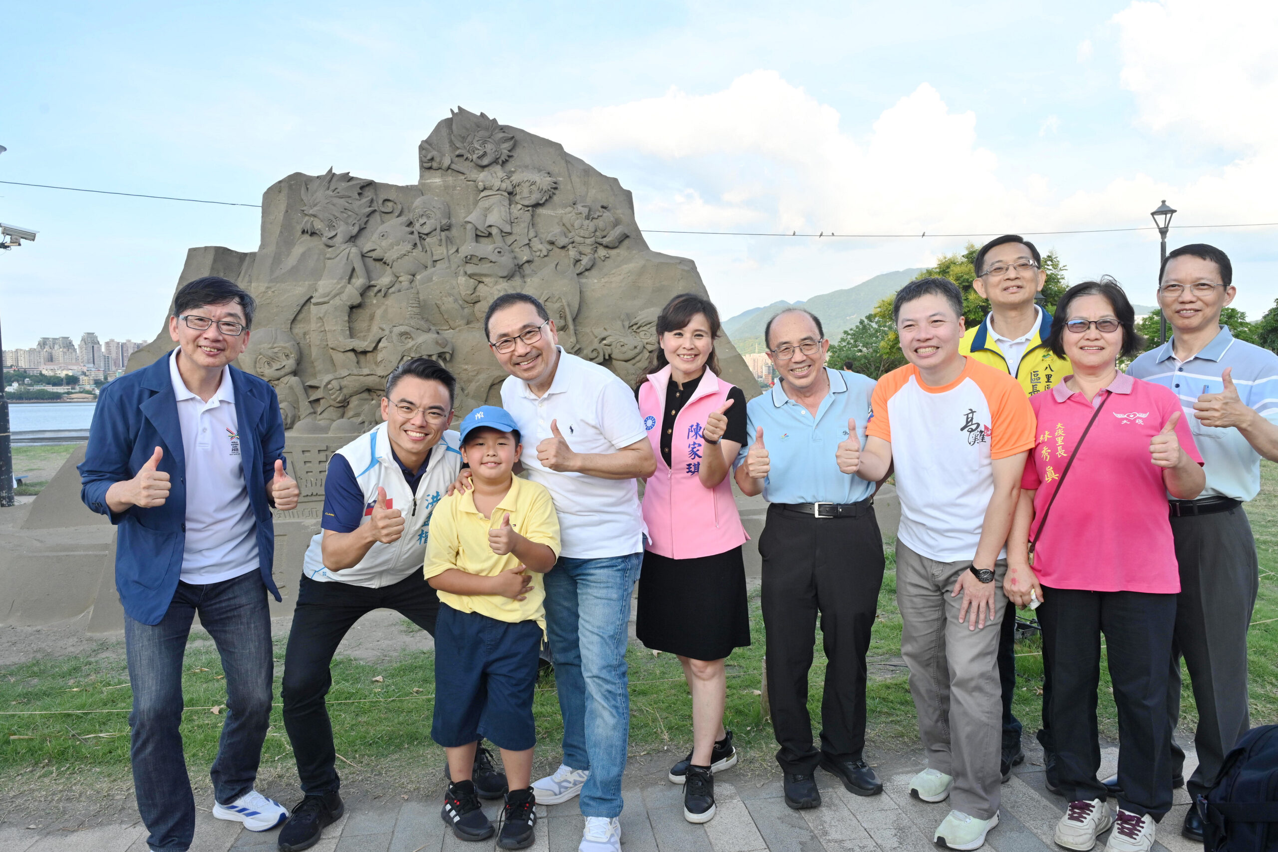 今年八里城市沙雕展邁入第八屆,首度與經典日系動漫《數碼寶貝》跨界聯名,以「被選召的孩子們」為主題,精心打造22座沙雕及6座光雕作品。市長侯友宜肯定市府團隊近年來在八里左岸河濱環境整建與觀光轉型上的努力,強調八里不僅擁有美麗的夕陽與河景,更透過國際級的沙雕藝術,成功將藝術與生活緊密結合。