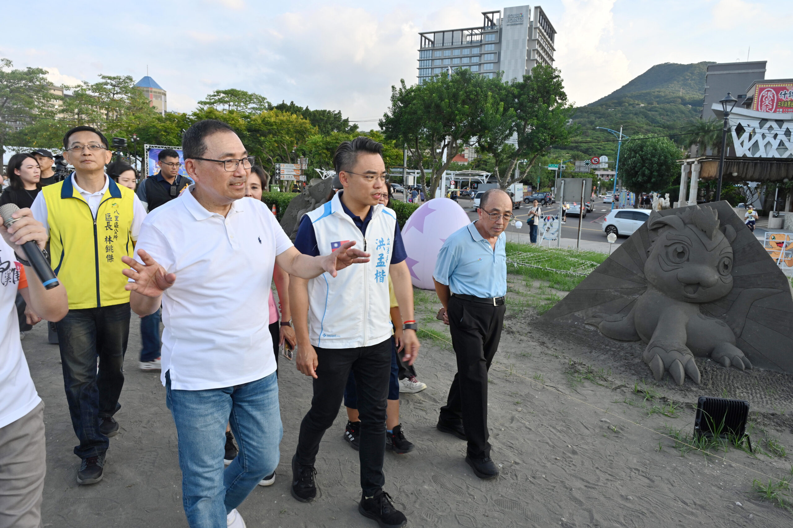 開展以來人氣爆棚「2025八里城市沙雕展」,儘管已屆滿月,觀展人潮依然絡繹不絕。新北市長侯友宜今(20)日親自前往八里左岸沙灘參觀,為回應廣大民眾熱情,特別宣布展期將從原定時間延長至11月2日,並加碼6場次「沙雕師工作坊」,邀請更多親子一同體驗沙雕創作樂趣。