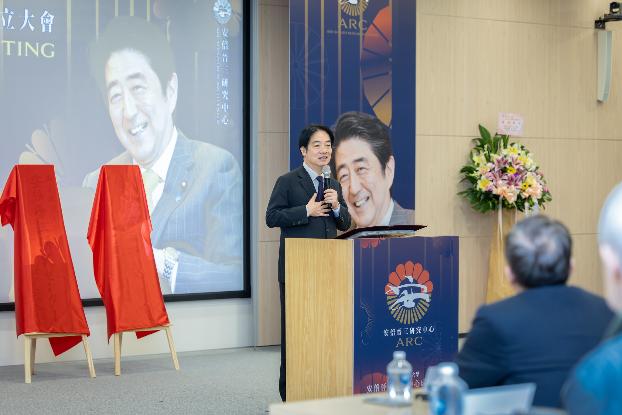活動最後,賴總統與安倍昭惠夫人一同為研究中心揭牌,包括國安會秘書長吳釗燮、教育部長鄭英耀及多位日本國會議員、日本台灣交流協會代表等皆出席盛會。