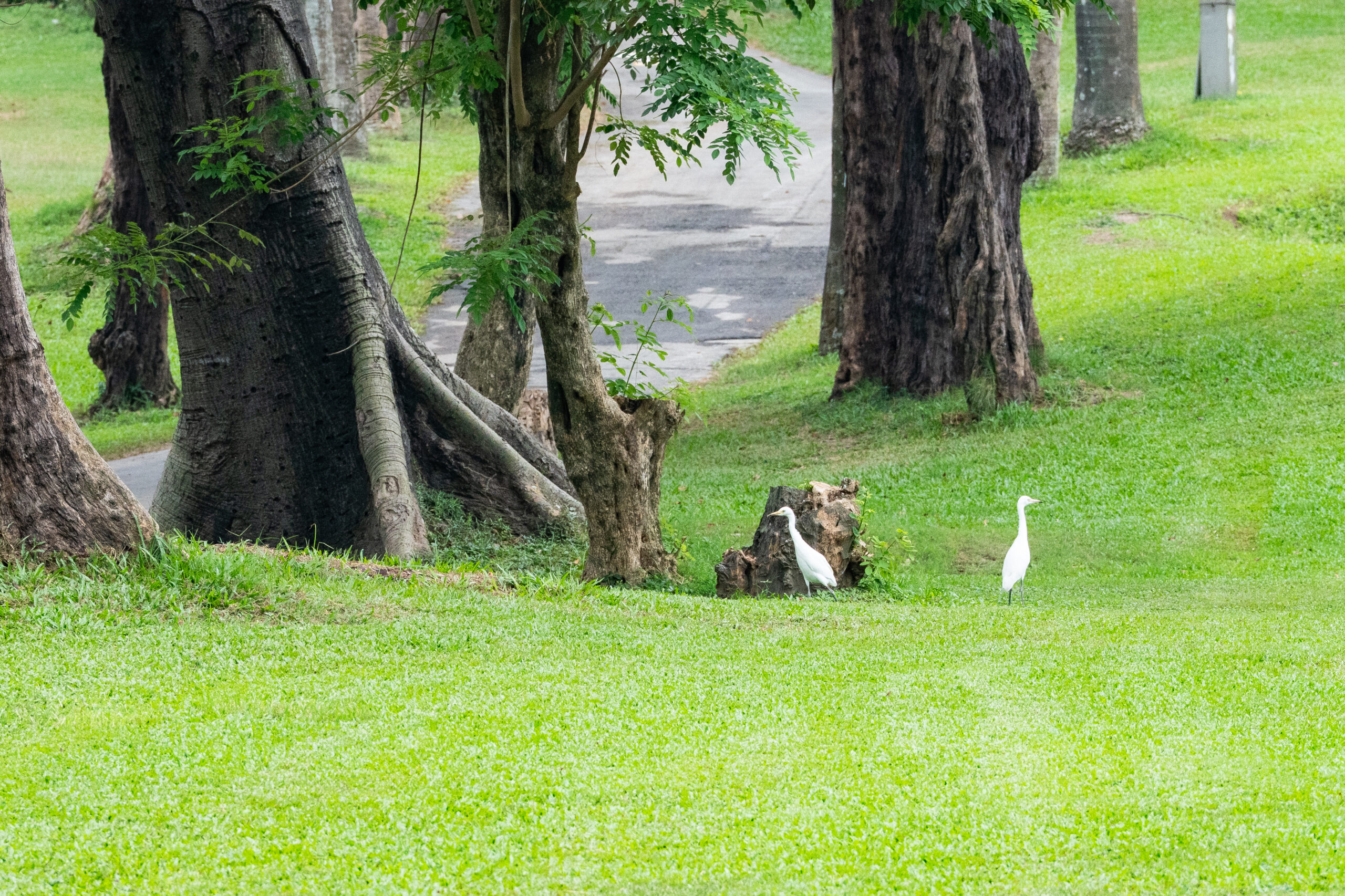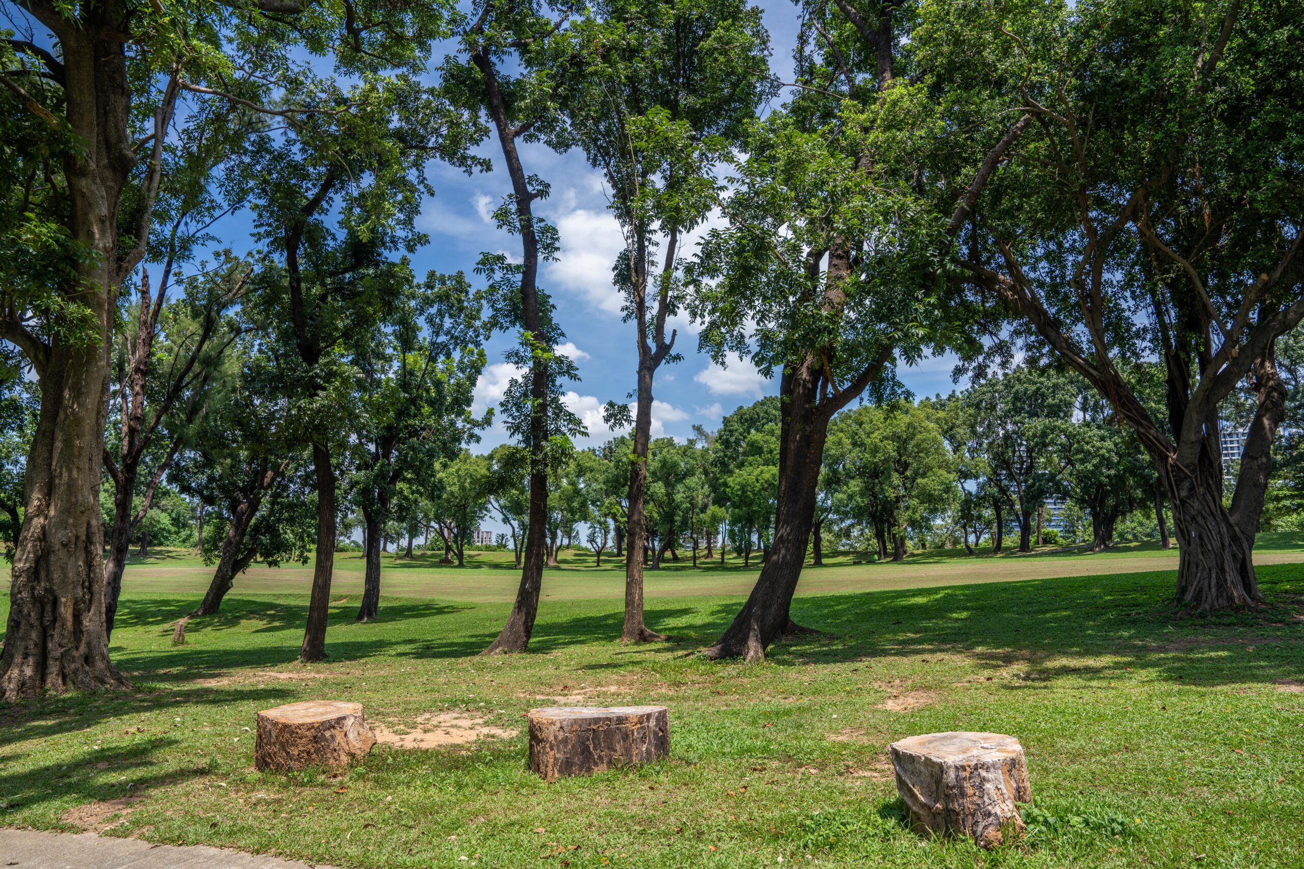 這片70公頃的綠地保留了高爾夫球場原始的丘陵、水塘與草原景觀,並規劃了7.2公里以上的園區步道,非常適合高雄市民進行健走、休憩與生態觀察。園區設計遵循低干預原則,設施極為簡約,甚至利用去年颱風後倒塌的枯木來製作各式座椅,體現循環利用與環境友善的理念。高雄鳥會的調查顯示,此區域已記錄到超過90種鳥類,常可見到二級珍貴稀有保育類的大冠鷲、鳳頭蒼鷹,以及黃鸝、水雉等指標性鳥類出沒,凸顯了這塊棲地的珍貴性與脆弱性。
