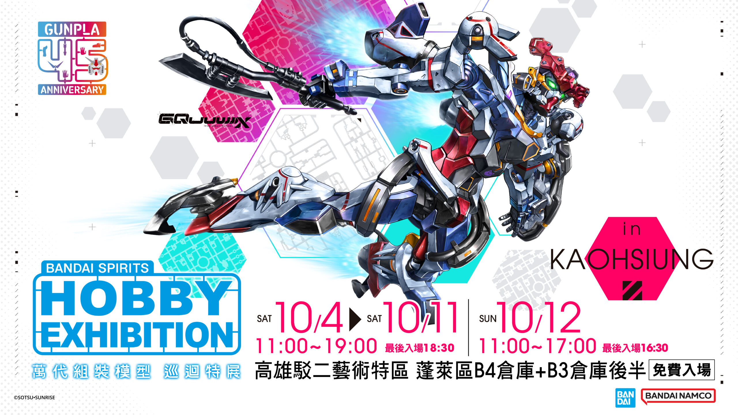 這次的「萬代組裝模型巡迴特展」首先在高雄展開,展期從 10 月 4 日(五)至 10 月 12 日(六),地點選在文創氣息濃厚的駁二藝術特區,展期橫跨中秋節與雙十連假。緊接著,巡迴展將睽違兩年重返台中,於 11 月 1 日(五)至 11 月 9 日(六)在台中 Lalaport 與中部粉絲見面。