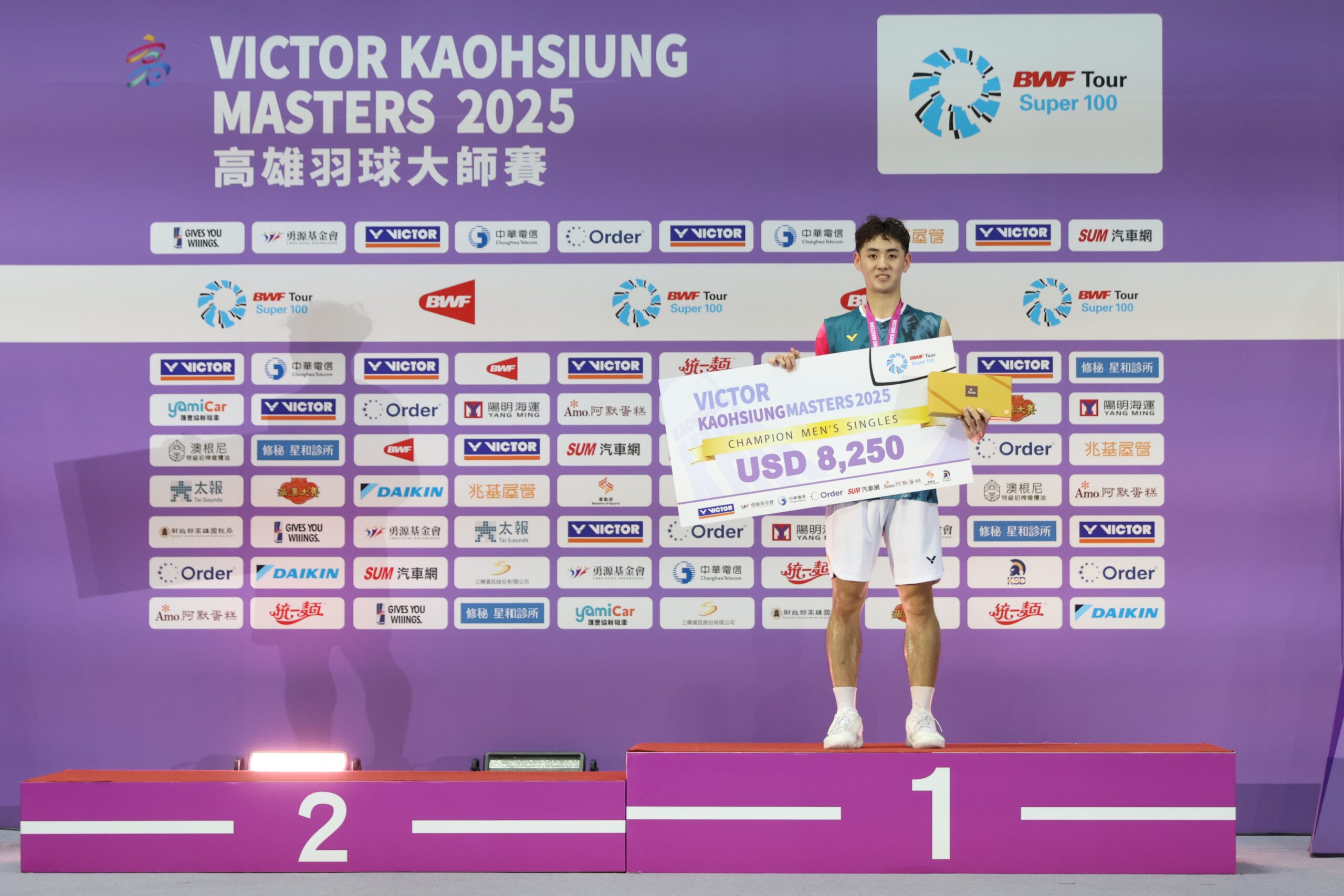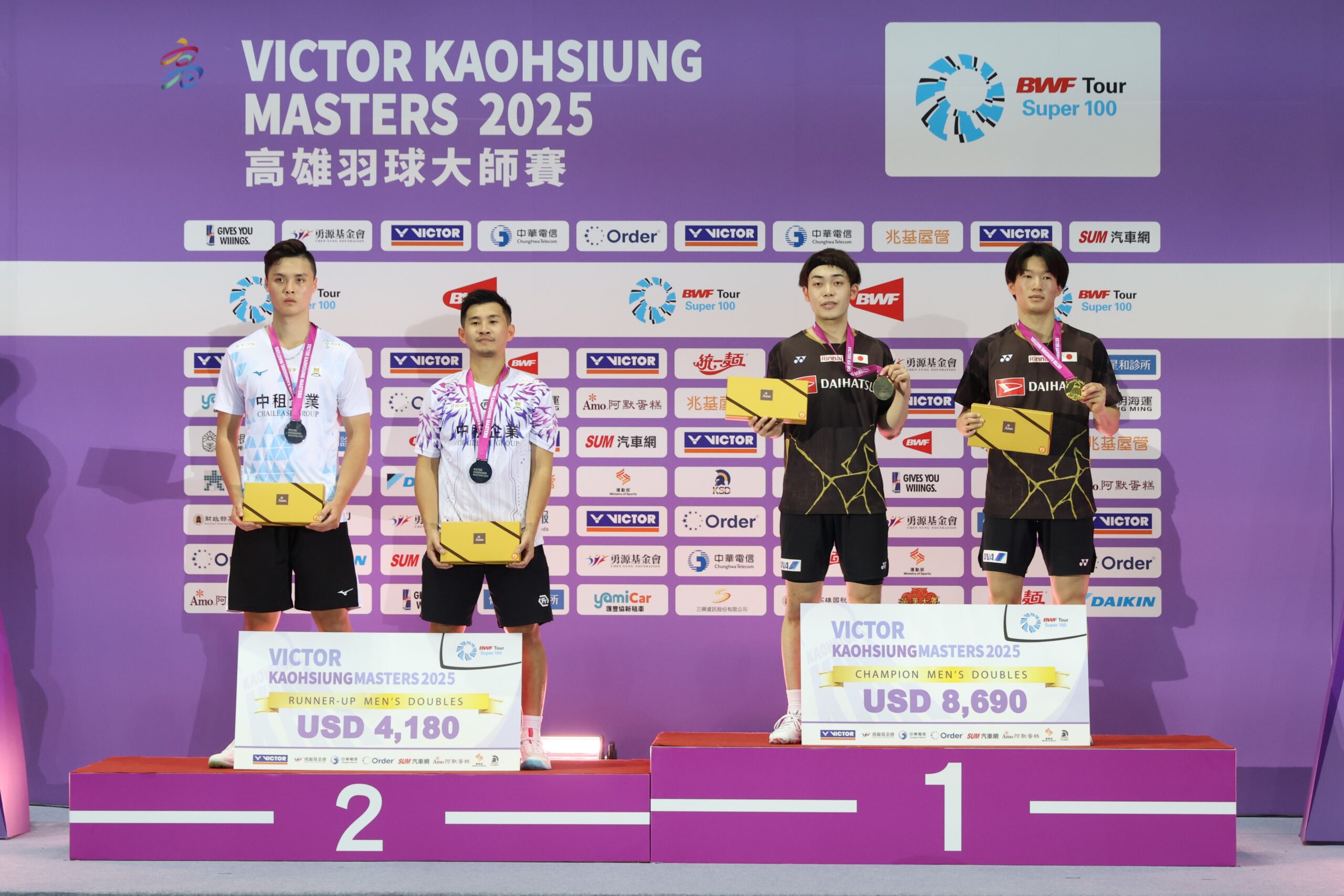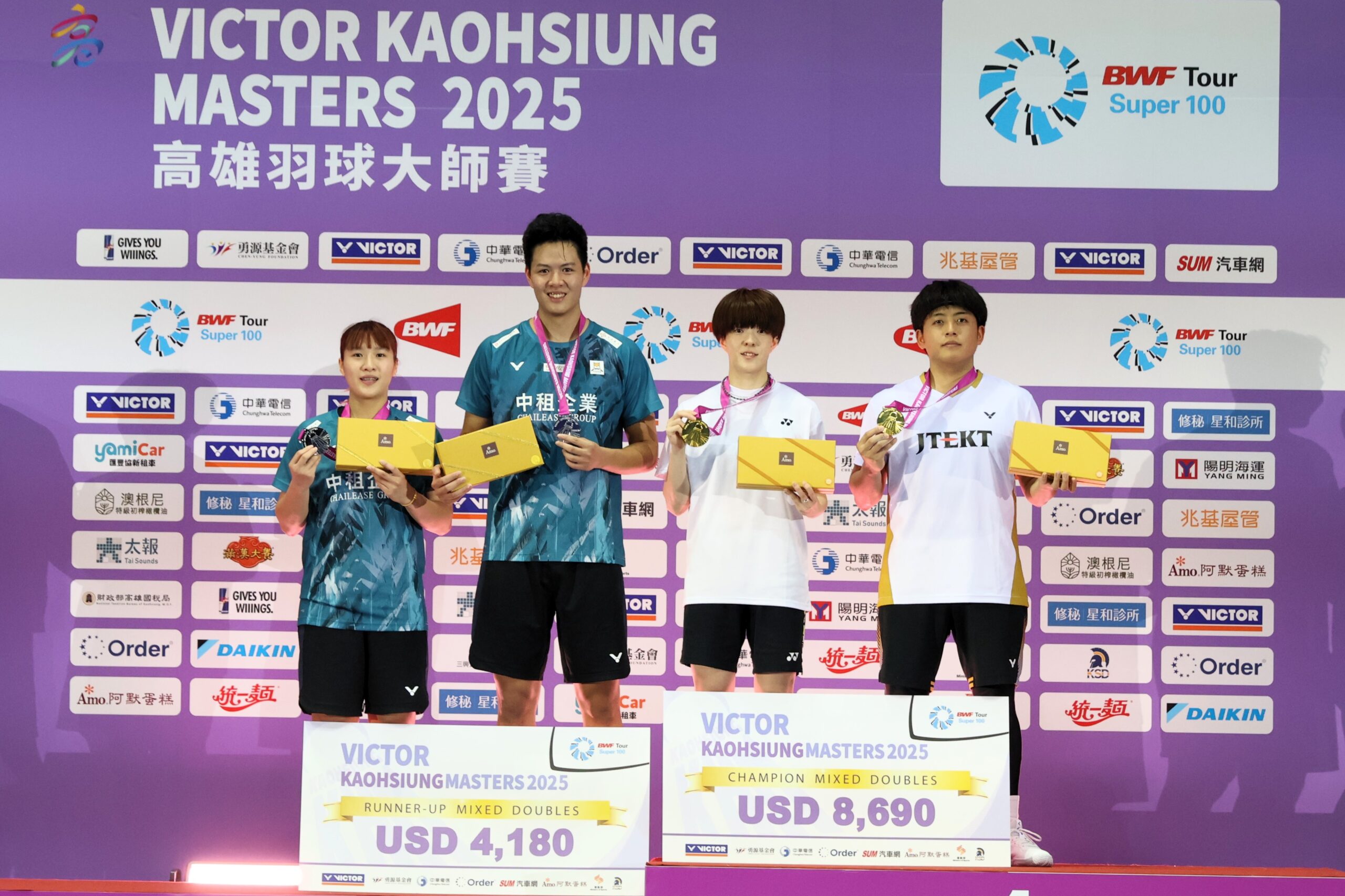 這場自9月23日起展開的BWF世界巡迴賽高水準賽事,在今日決賽中迎來高潮。最受矚目的男單冠軍戰,由台灣選手王柏崴力克對手,成功將金牌留在高雄。此外,吳軒毅/楊筑云在混雙項目、蘇敬恒/吳冠勳在男雙項目也為地主隊摘下兩面銀牌,為2025高雄羽球大師賽劃下完美句點。今日各組的冠軍分別是:女單由奧原希望(Nozomi Okuhara)奪冠、亞軍為明地陽菜;男單冠軍王柏崴,亞軍為帕尼查彭.提拉拉薩庫;混雙冠軍古賀輝/今井優步,亞軍吳軒毅/楊筑云;女雙冠軍平本梨梨菜/石川心菜,亞軍鈴木陽向/山北奈緒;男雙冠軍熊谷翔/西大輝,亞軍蘇敬恒/吳冠勳。