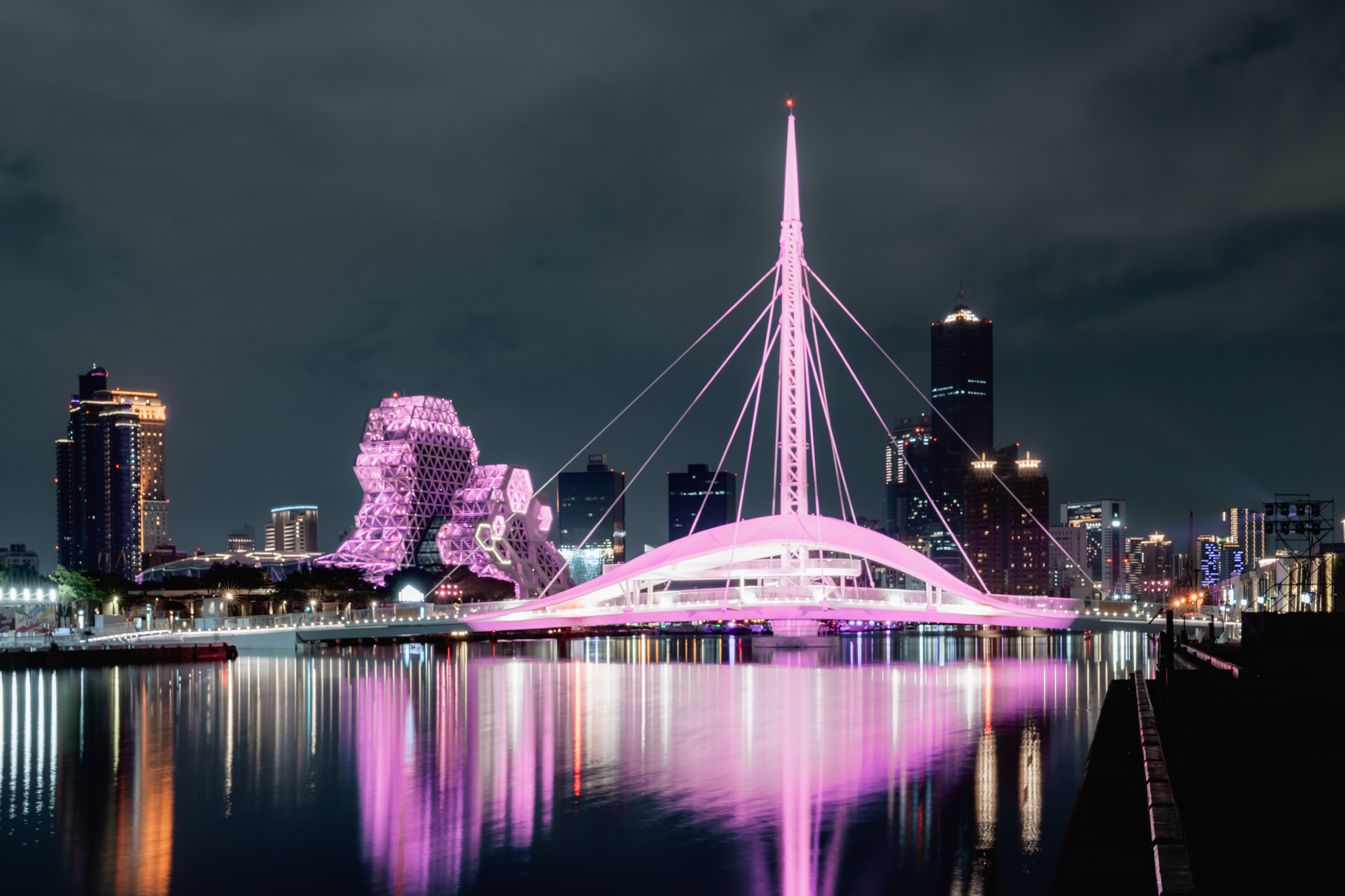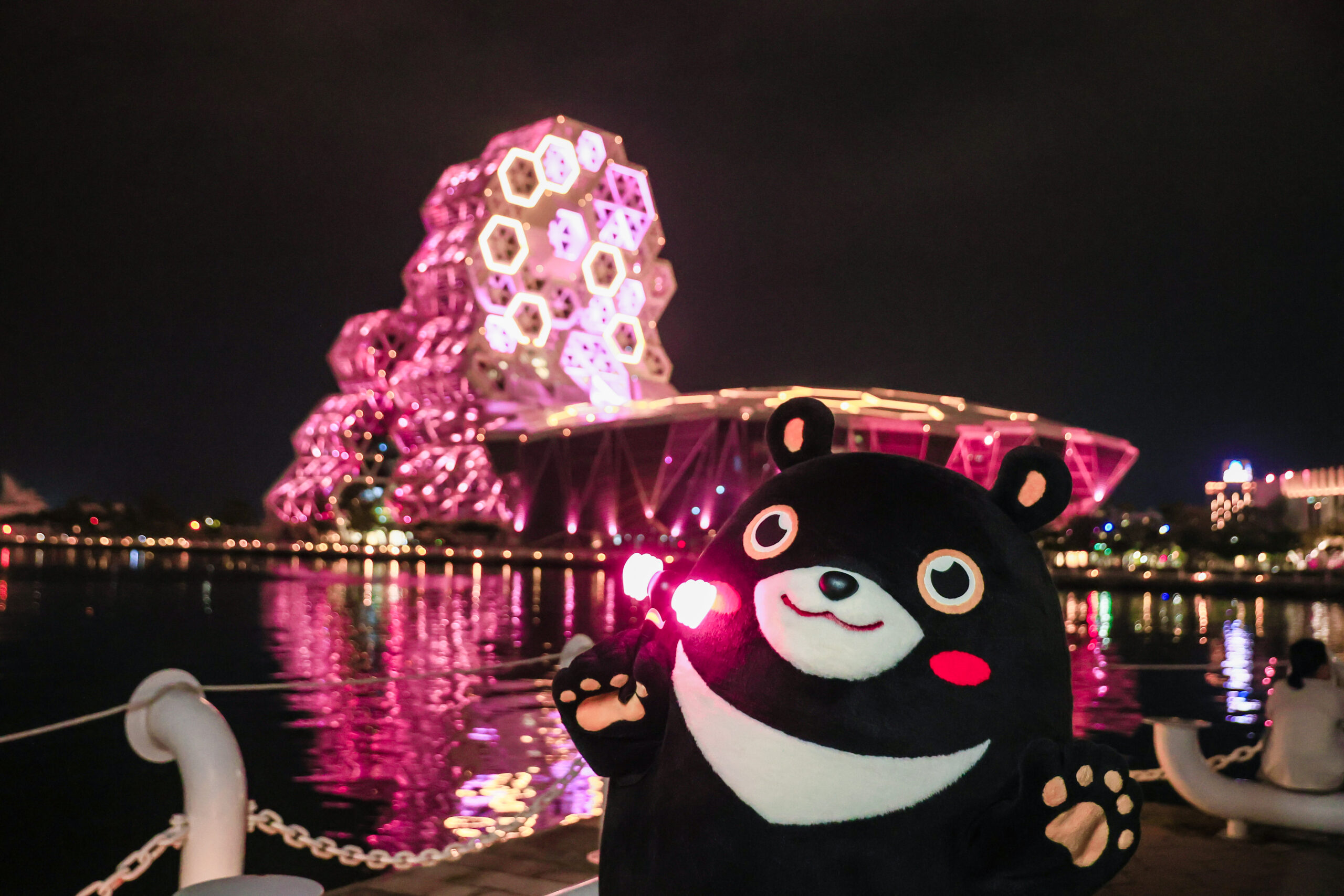 同時,為迎接國際巨星,市府也攜手民間業界共同營造城市魅力。例如,本次韓國女子天團來高演唱期間,市府積極串聯大港橋、愛河、高雄流行音樂中心等6大熱門景點共同點亮粉紅色燈光;觀光局也串連在地觀光業者,共同響應「粉紅行動」,包括飯店旅宿點亮粉色燈光、推出粉紅套餐或商品等期間限定活動,城市吉祥物「高雄熊」社群也換裝成粉紅熊,積極營造粉紅浪漫氛圍,熱情迎接海內外歌迷。