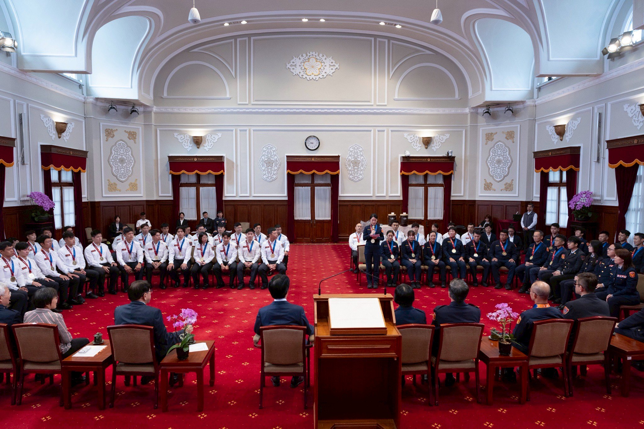 除了在國際賽事為國爭光,賴清德總統也藉此機會,感謝內政部長劉世芳、警政署署長張榮興及消防署署長蕭煥章的大力支持,以及所有警消同仁在工作崗位上的努力付出。總統指出,警消人員積極維護國人生命財產安全,每當災害及危險發生時,總是站在第一線全力以赴。