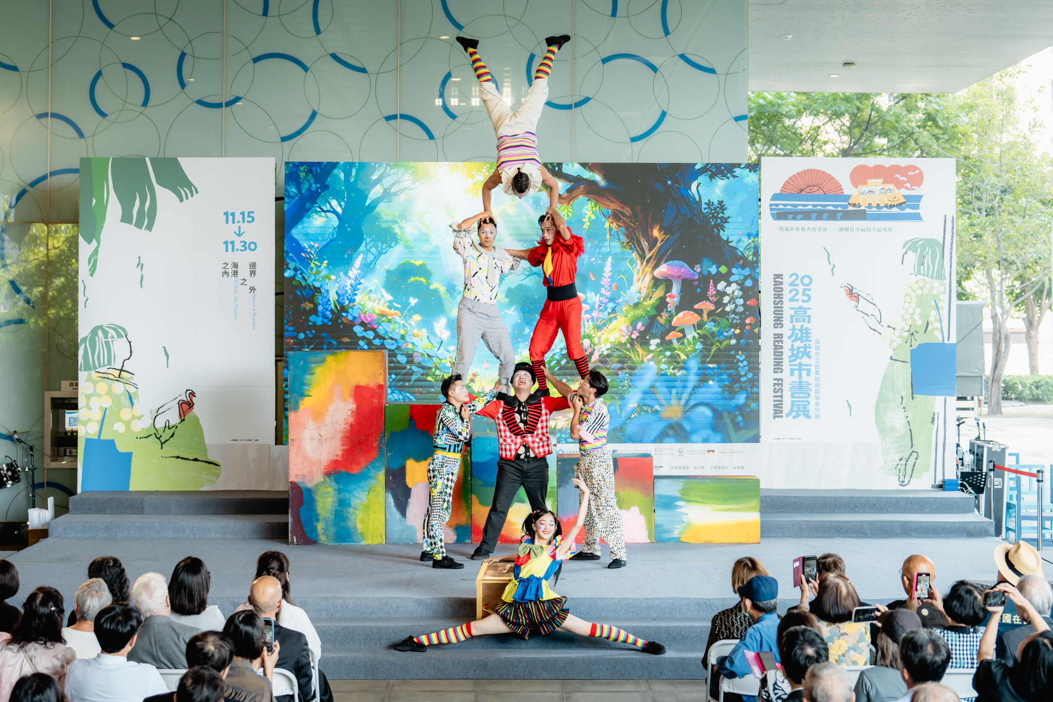 以「移動」為主題的2025高雄城市書展今(15)日在高雄市立圖書館總館啟幕,從圖書館延伸至輕軌、草地與城市角落,打造跨域、多感官的閱讀城市。開幕儀式由 FOCASA 馬戲團揭開序幕,現場驚呼聲不斷,本屆書展匯集百家出版社與獨立書店打造「港灣書市」,並於接連3週週末推出超過百場活動、7大主題特展、國際講座與跨域演出,呈現高雄年度最大規模的閱讀盛事。