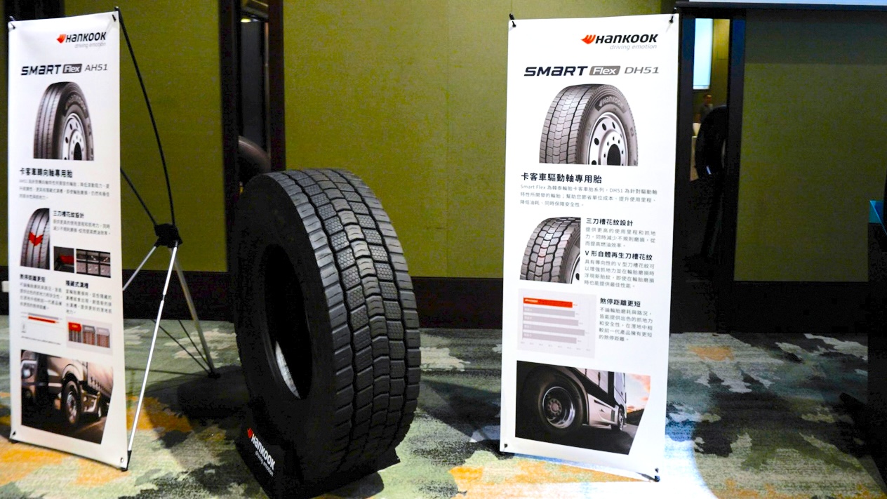 韓泰輪胎也相當重視台灣的商用車市場,推出專為驅動輪設計的全功能里程卡車胎DH51,以及針對轉向軸輪胎的AH51。兩款輪胎在提升抓地力、降低滾動阻力和提升磨耗里程上都有升級。