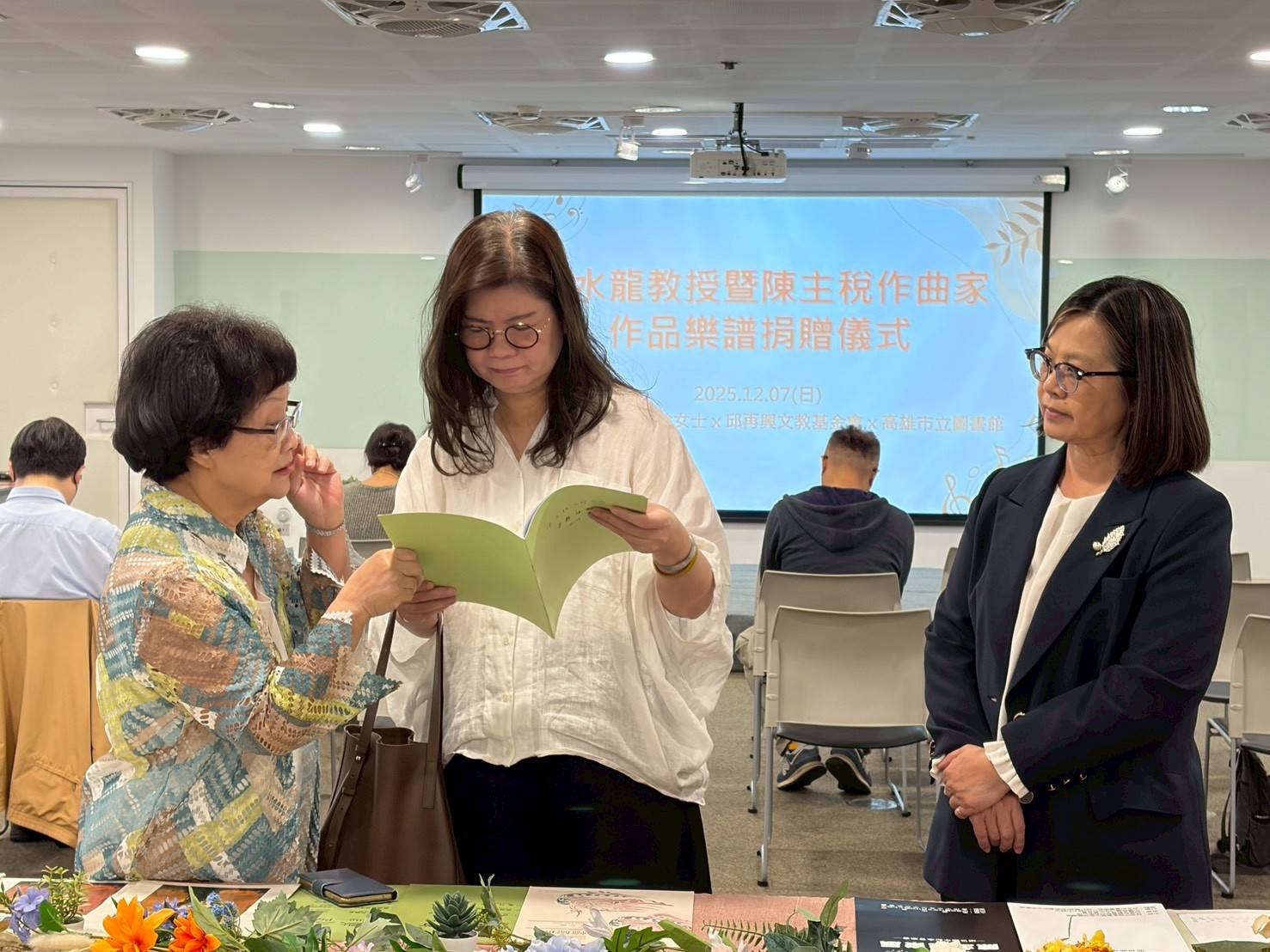 高雄市政府文化局局長王文翠特別出席儀式,強調這次的捐贈讓城市同時獲得兩位大師珍貴且完整的原典資料,是台灣現代音樂重要歷史的延續。她指出,無論是節目冊或經典樂譜,皆是文化記憶的核心載體,未來也將持續支持圖書館在保存、典藏與推動藝文教育上的努力,讓珍貴的台灣音樂資產能被市民看見與重新演奏。