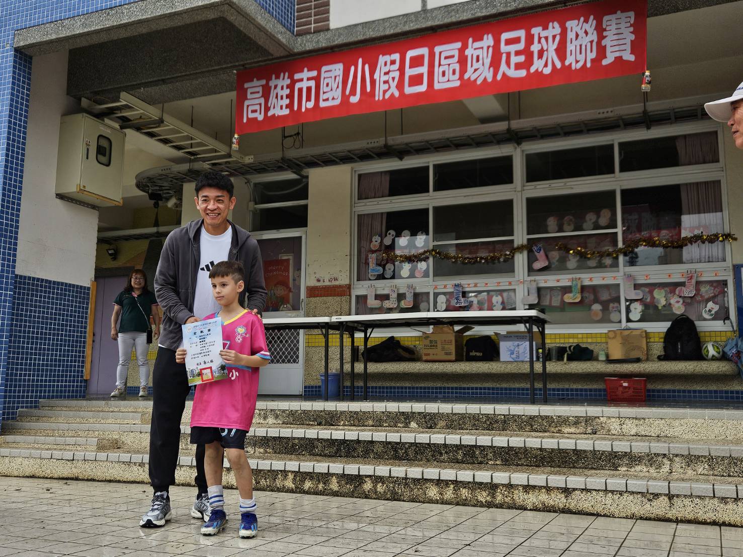 20日閉幕式最令孩子們驚喜的,莫過於台灣男足當家領袖、人稱「台灣隊長」的陳柏良親自來到鼎金國小。陳柏良趁著球賽休賽期間,特別在百忙之中抽空出席,鼎金國小足球教練即為陳柏良的啟蒙教練李春融。台灣隊長親手將獎狀與獎勵頒給這些未來的小球星,勉勵他們享受比賽、愛上足球。能從偶像手中接過獎項,讓這群小小足球員們都感到既興奮又感動。