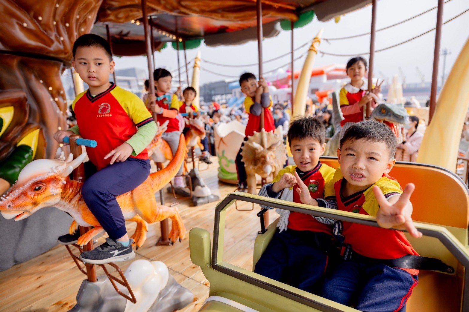 觀光局長高閔琳說明,今年樂園規模升級,共設置22座設施,其中9座為首度亮相的機械及氣墊遊具,包括「恐龍主題旋轉木馬」、「夢幻飛天車」及「星際探險」等。為提升安全性與遊玩品質,現場更特別規劃專屬2-4歲幼童的遊戲區。