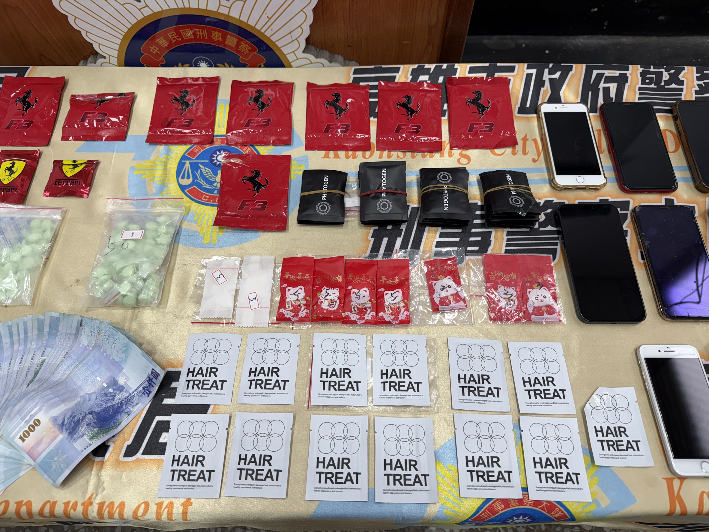 案經警方歷時數月的跟監與蒐證,掌握該集團藏匿毒品的處所與交通工具。在獲得台灣高雄地方法院(檢察署)核發的搜索票後,警方隨即發動掃蕩。行動中,警方在販毒車輛內起獲第三級毒品K他命44包、卡西酮咖啡包57包、哈密瓜錠6包,以及贓款3萬餘元與手機11支等物證。
