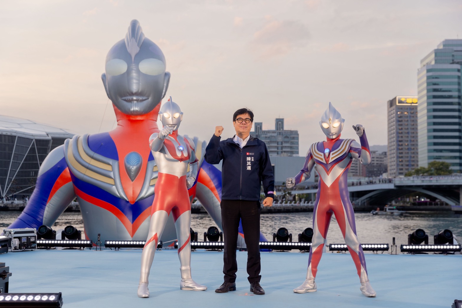 高市府觀光局表示,這不僅是國際 IP 的展示,更重要的是向在城市各角落默默付出的無名英雄致敬。參與開幕的 70 名「城市超人」包括消防救災、醫療救護及交通疏運人員,陳其邁感性指出,「城市超人才是主角」,強調守護城市的基層同仁與超人力霸王一樣,都是守護家園的英雄。