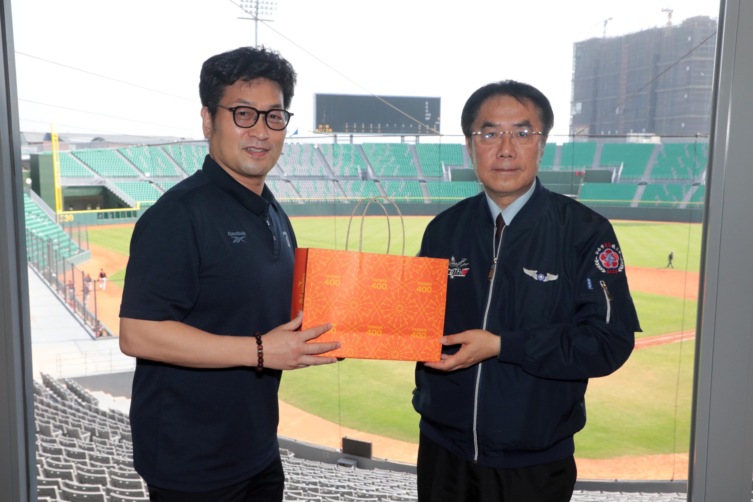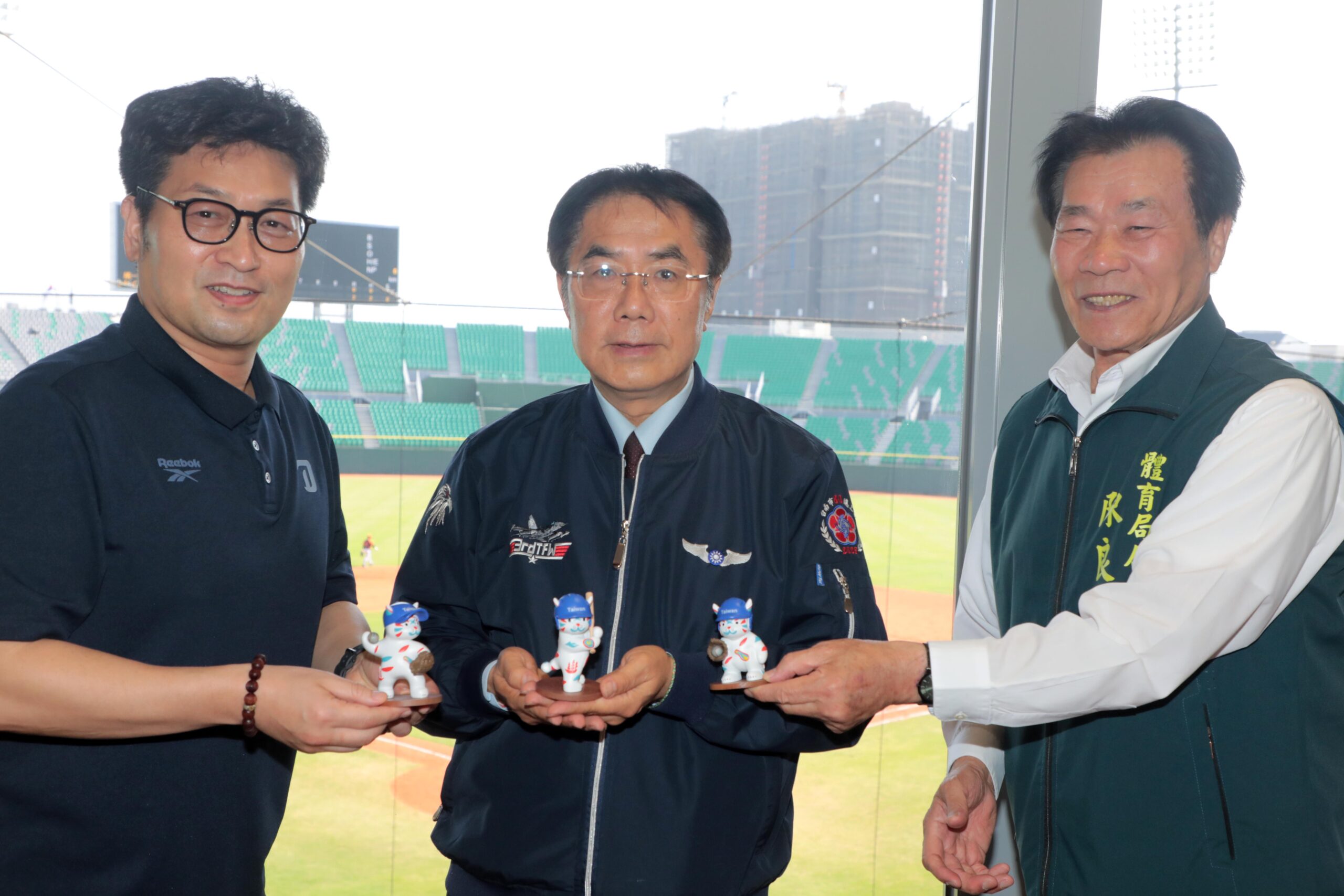 韓國職棒 NC 恐龍隊(NC Dinos)連續兩年將海外春訓基地設於台南亞太國際棒球訓練中心,並於今日(2/25)與中職勁旅統一 7-ELEVEn 獅展開閉門交流賽。台南市長黃偉哲親自到場致贈伴手禮,除了祝福球員備戰順利,雙方透過棒球切磋以球會友,展現台南熱情的運動外交實力,也提到此次交流可說是主球場正式啟用前的關鍵壓力測試。