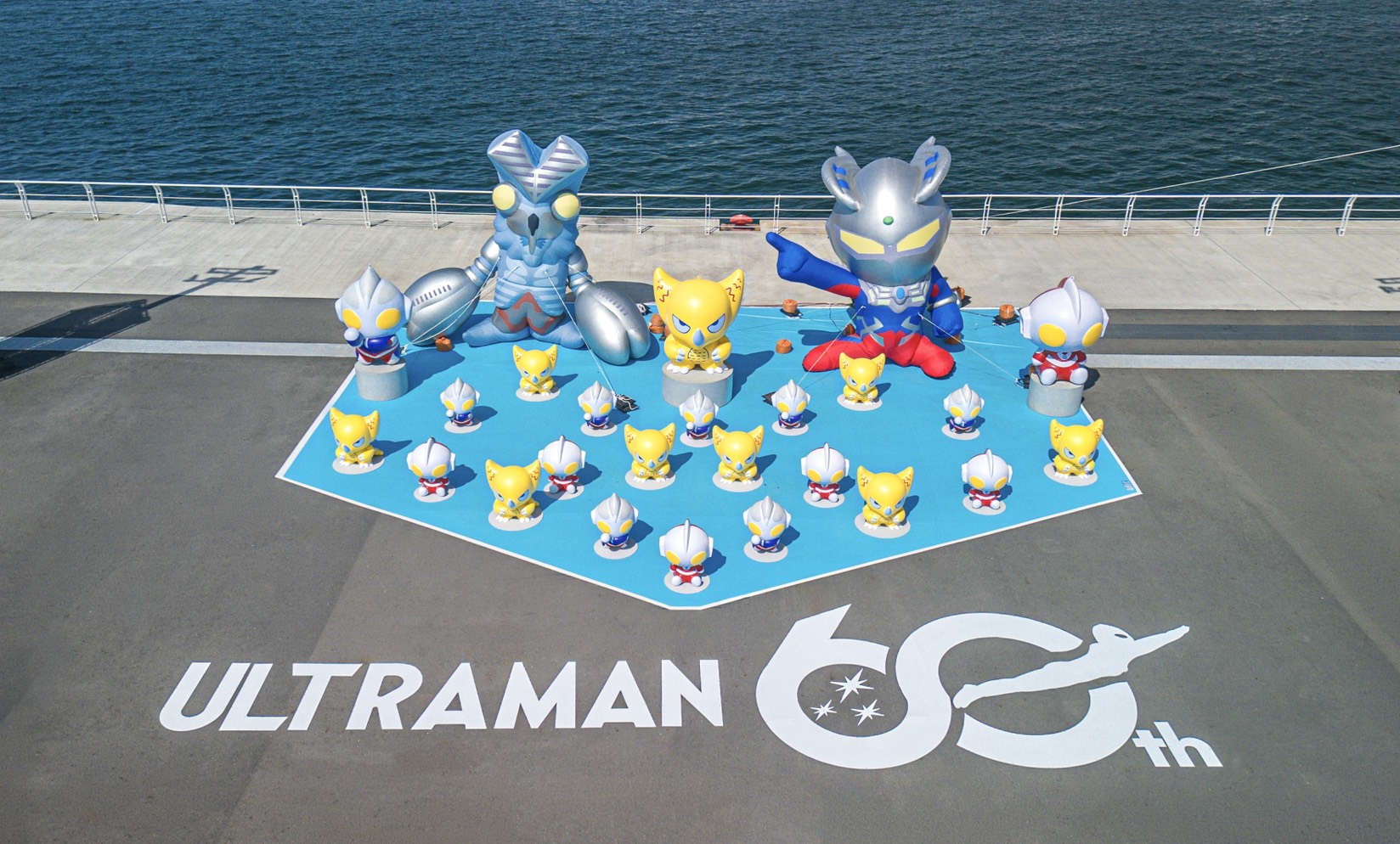 今年高雄冬日遊樂園作品最多,共計有兩座高達15公尺的巨大寫實版「超人力霸王」作品,於高雄流行音樂中心音浪塔前及珊瑚礁群好望角帥氣現身;碼頭樂園則設有初代對戰哥摩拉、Q版傑洛與巴爾坦星人、昭和六兄弟等三組大型超人力霸王主題藝術裝置。