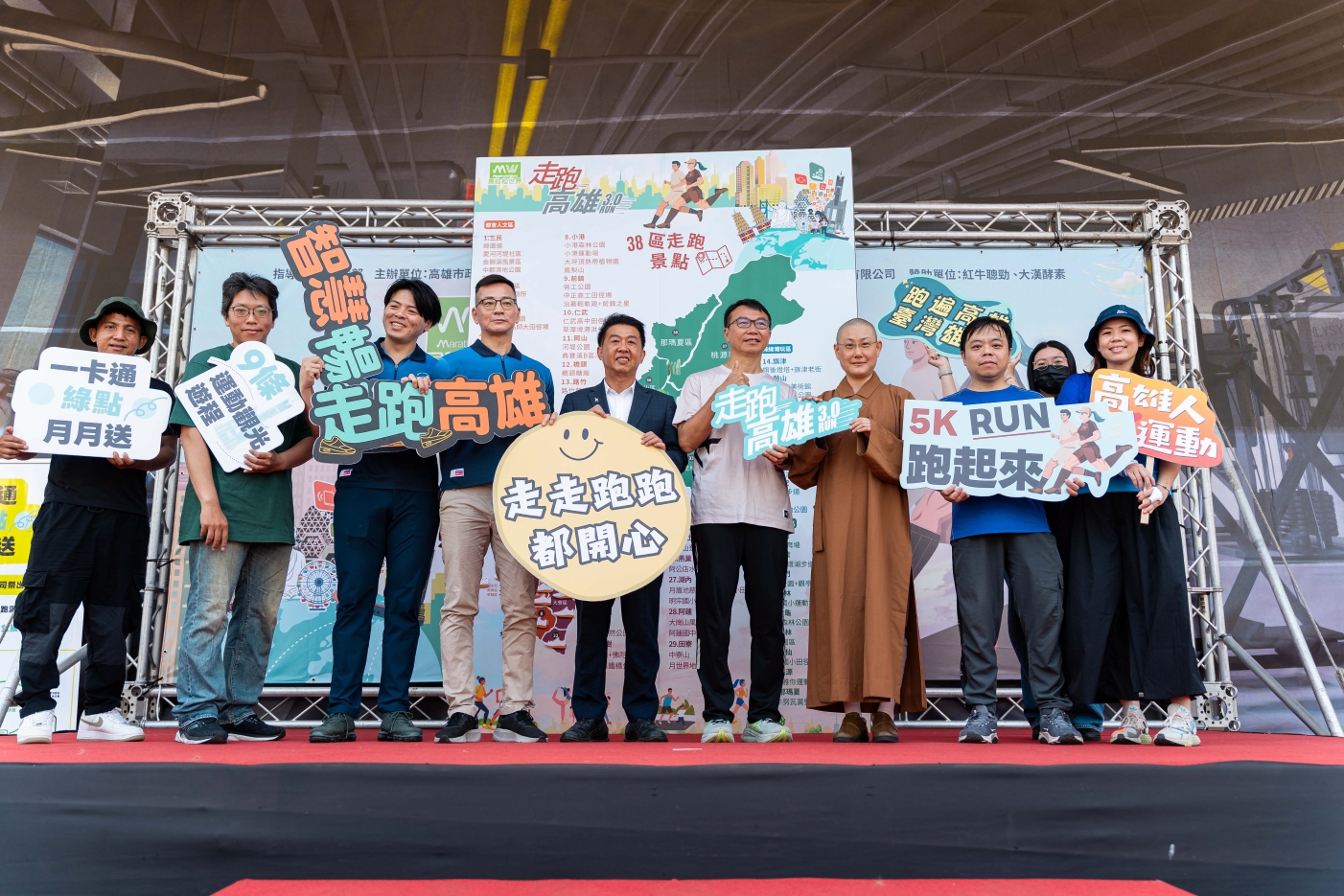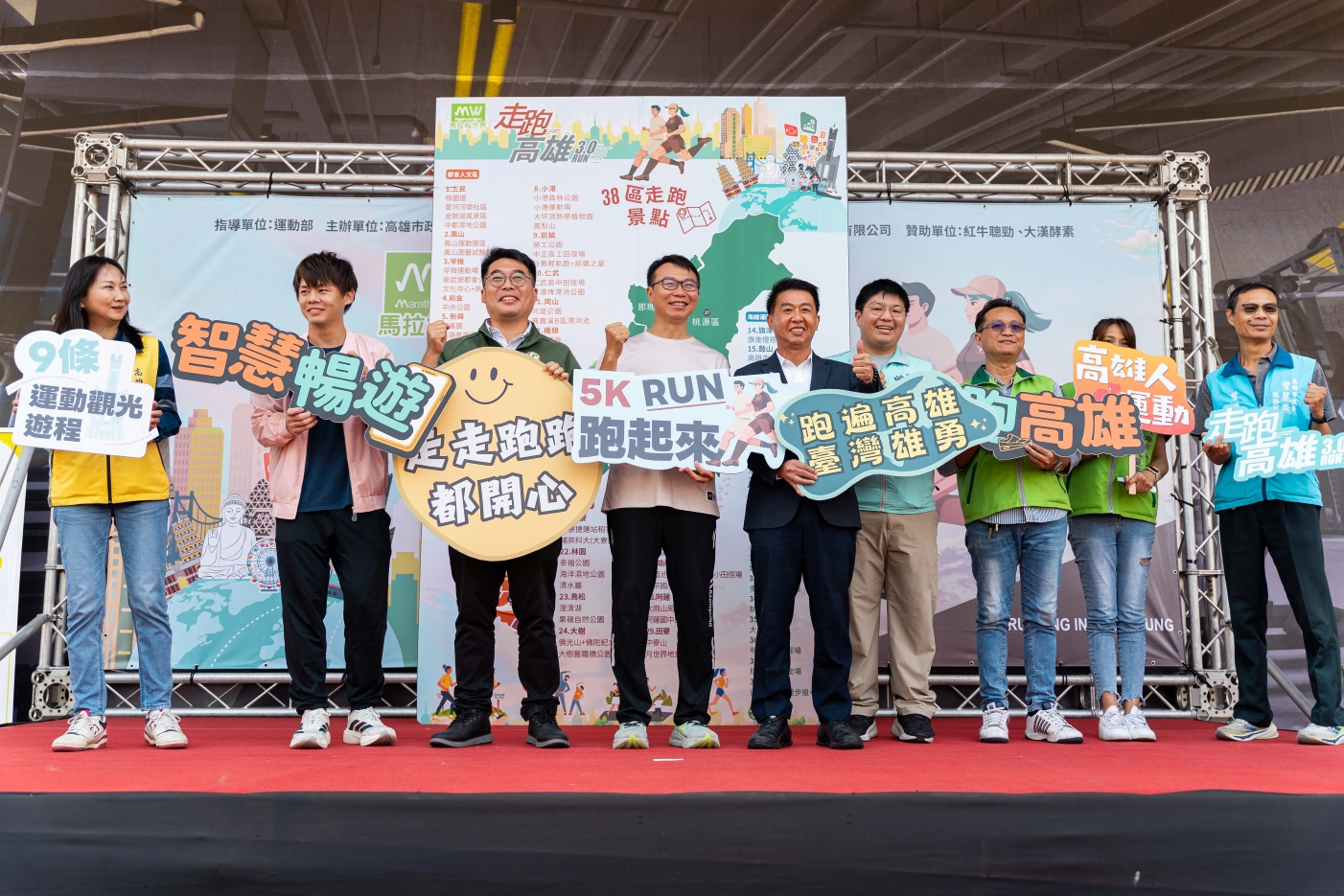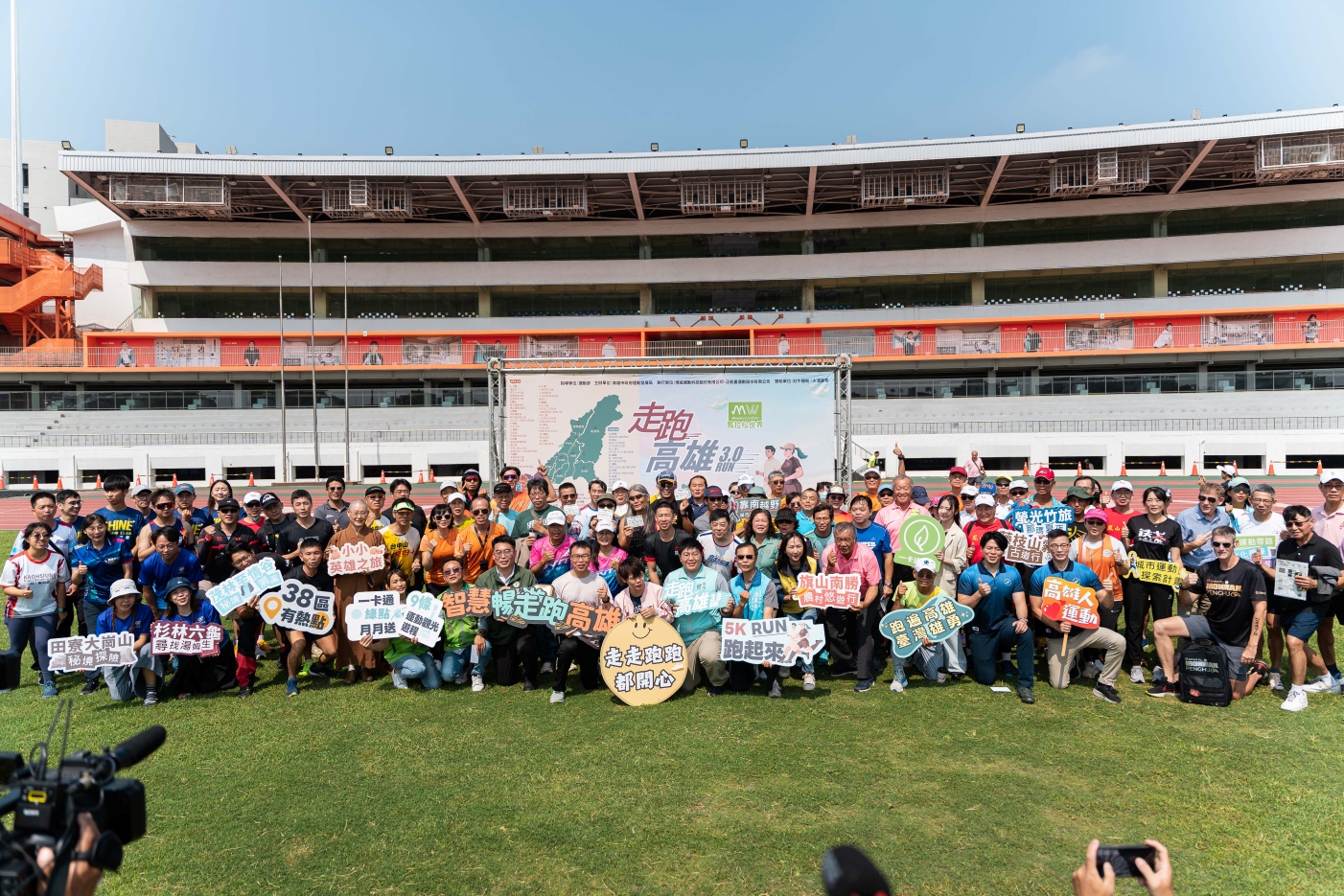 「走跑高雄 2.0 」去年吸引 7,524 人報名參加、累積逾 142 萬筆運動紀錄,今在苓雅運動園區舉行的 3.0 啟動記者會,吸引多位地方民代與跑團代表參與,共同宣告運動任務開跑。運發局長侯尊堯在現場不僅分享自己固定在夢時代周邊慢跑 5 公里的習慣,更立下明年高雄富邦馬拉松突破 2 萬人的目標。他強調,「會走會跑,勝過黃金萬斗」。
