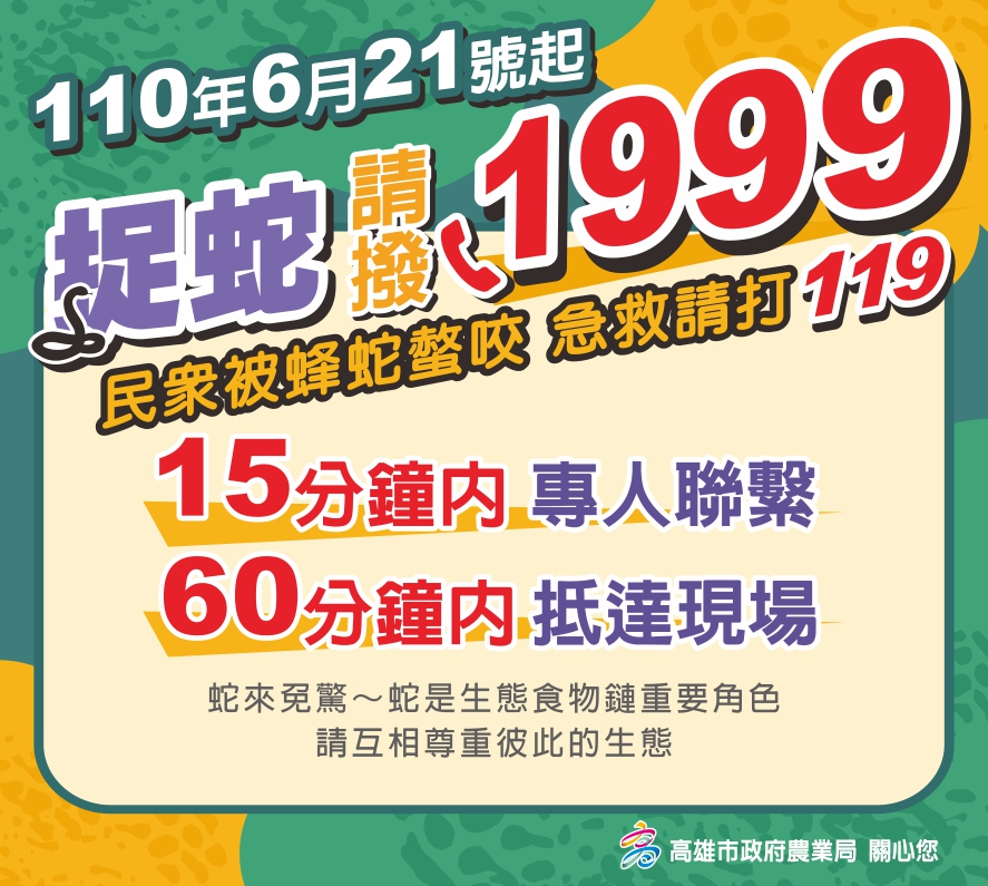 自然 高市農業局啟動捕抓蛇蜂服務 21日起改撥1999 2021-06-16 10:06 by Cheng Zhuo Xun 捕抓蛇蜂以往高雄市民都習慣撥打119請消防隊協助,不過今(110)年6/21起這… Read More