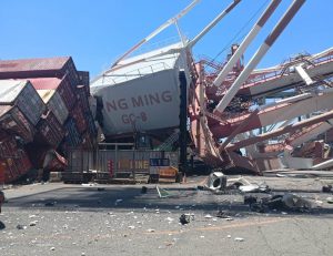高雄港70號碼頭發生事故 貨輪撞毀橋式起重機