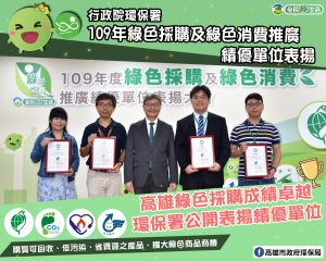 高市環保局致力推展「綠色消費」,在「109年綠色採購及綠色消費推廣績優單位表揚大…